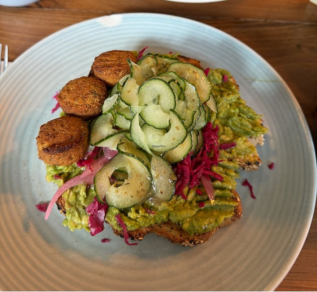 I ordered the “Ella” basically fancy avocado toast with a few falafels. It was 2 pieces of toast with plenty of avocado. Was filling and pretty tasty. They have other vegan options as well.