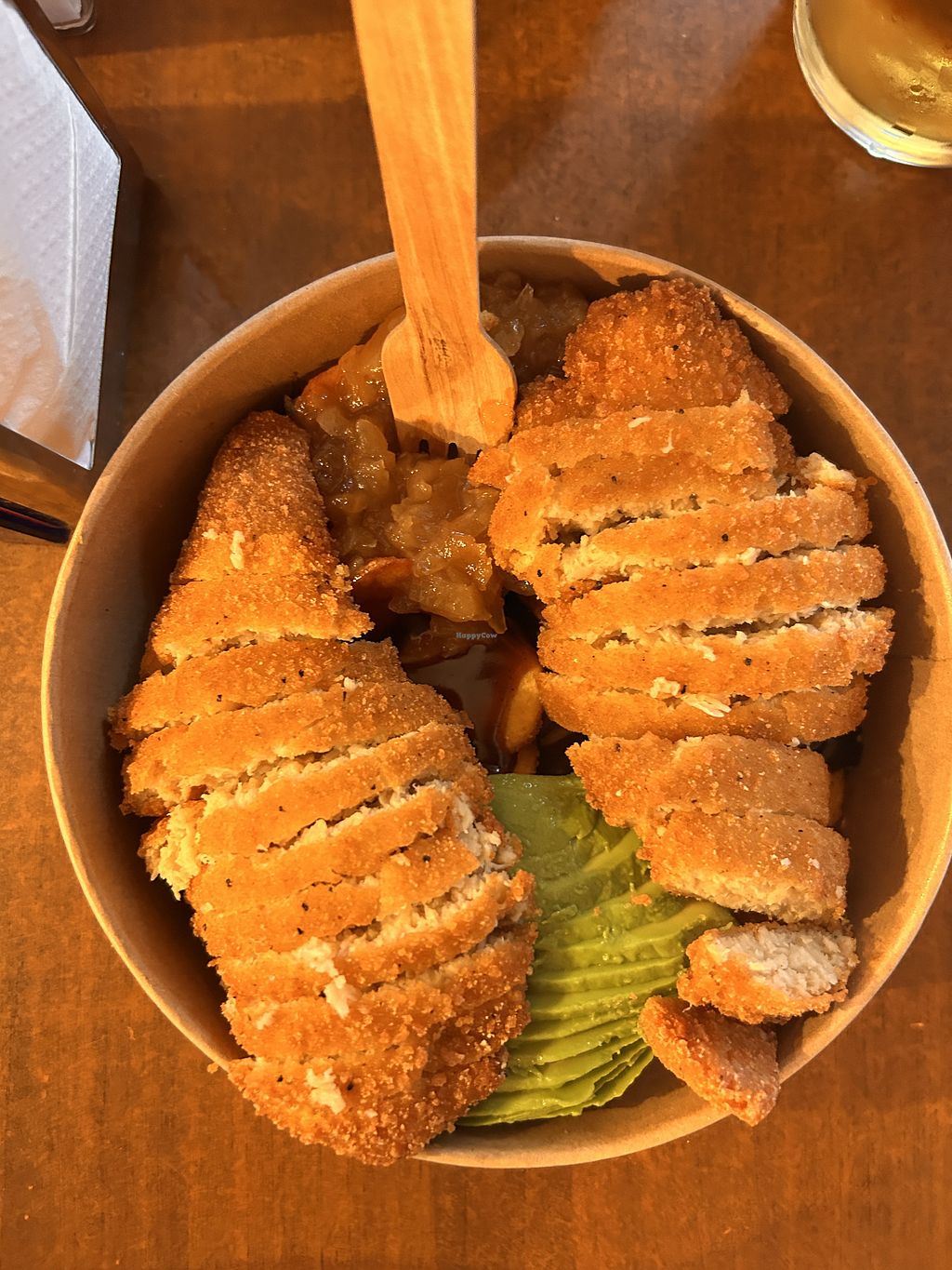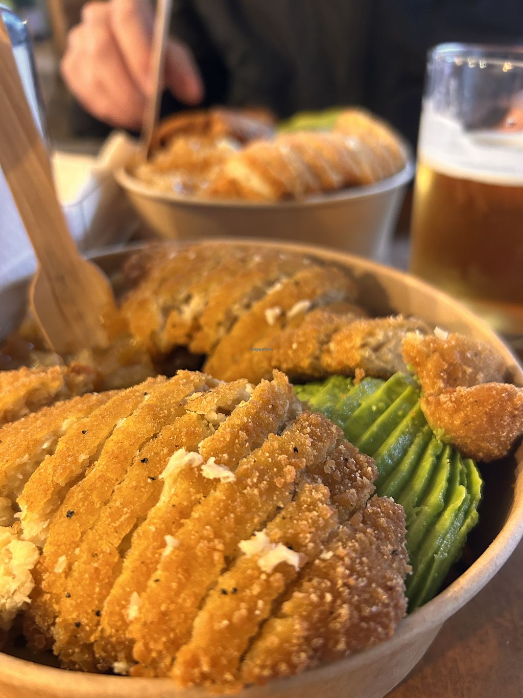 Poke vegano muy abundante, pedimos uno grande y otro pequeño y llenan mucho. Hay como proteína vegana heura y falafel que puedes combinarlo sin con base de patata, batata, yuca… y varios topping y salsas veganas