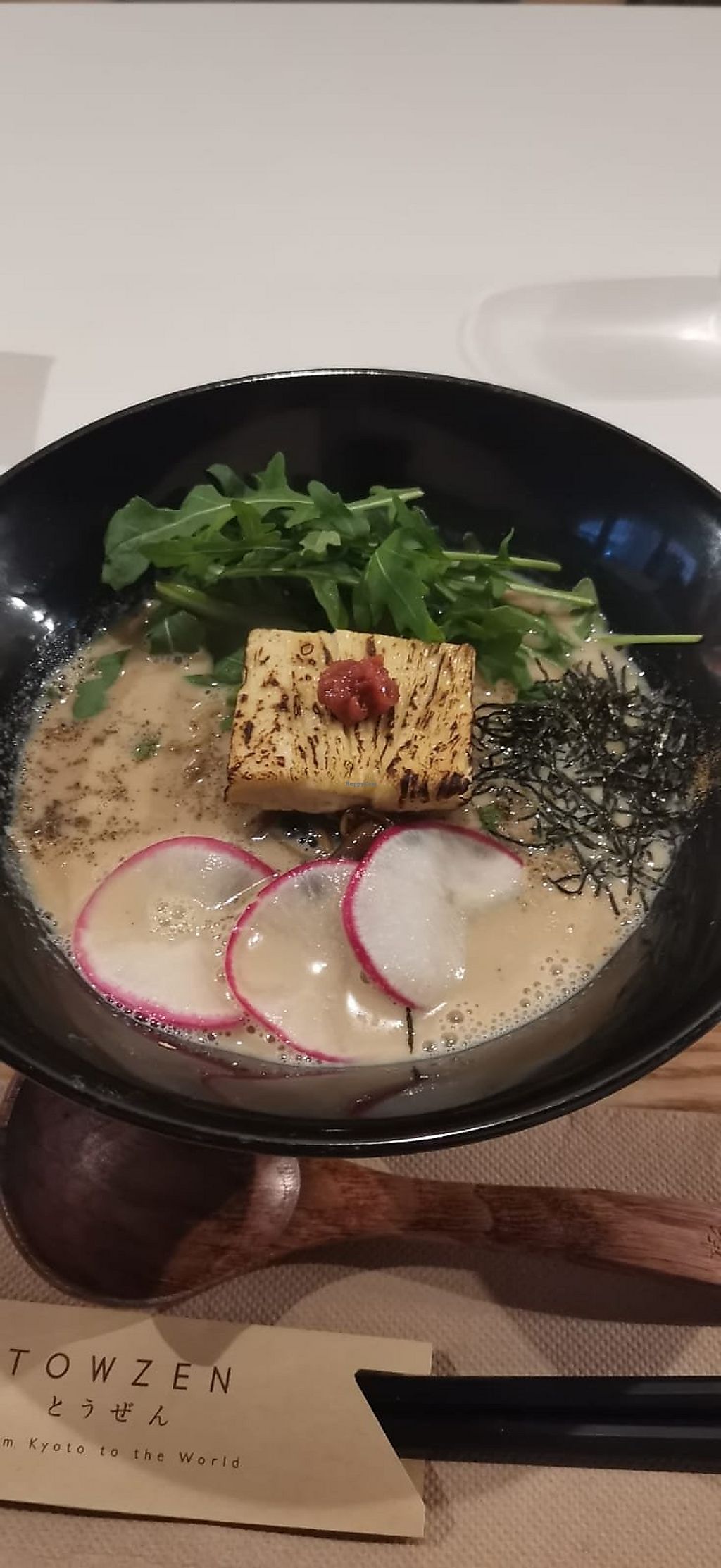 Had the Kyoto ramen, the broth was amazing got a depth I hadn't tasted before in other vegan ramens. Maybe an acid? Go here if you can spend $30 on a bowl
