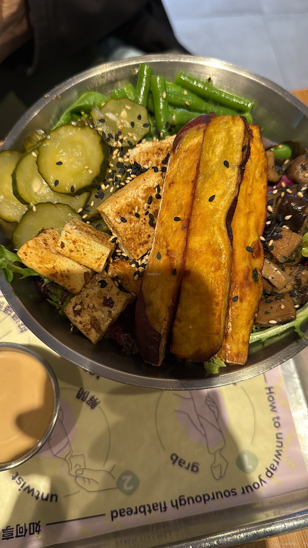 Love the food here. It tastes amazing, and sits really well in my stomach so I feel full but never heavy or bloated afterwards. Usually order a long wrap (HKD 100) - Cedar is my favourite one. The flat bread (vegan sourdough) is great, always fresh and tasty ingredients, and perfect sauces to accompany the fillings.