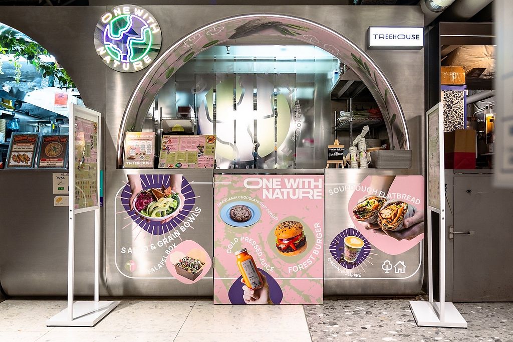 TREEHOUSE is a modern, chef-driven plant-based restaurant in Hong Kong, focused on sustainability and whole-food wellness. The menu features sourdough flatbread wraps, customizable salad & grain bowls with over 30 toppings, plant-based burgers made from whole ingredients, falafel, tempeh, hummus, tahini, and raw vegan desserts. Drinks include cold-pressed juices, kombucha, organic coffee, and specialty lattes. Designed as an eco-conscious space with reclaimed wood, recycled plastic, and composting, TREEHOUSE embodies the ethos of being "One with Nature". Open Mon-Sun 11:00am-9:00pm.