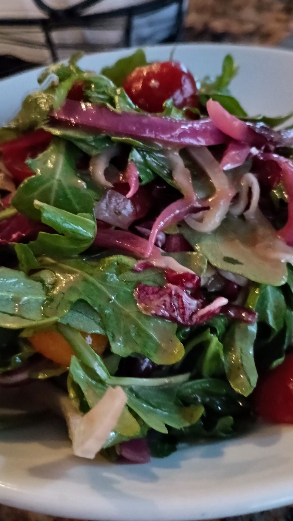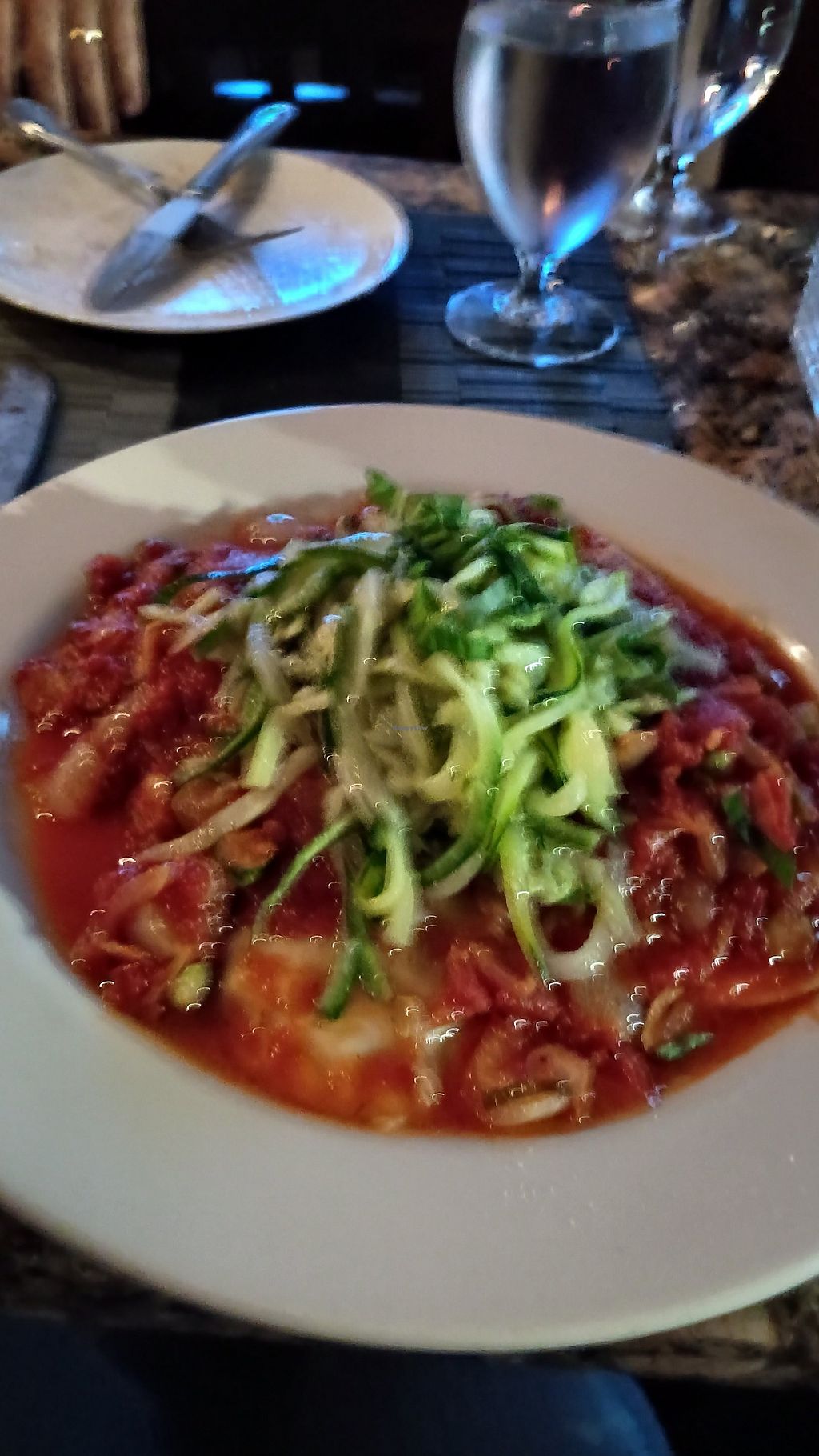 Pizza with peppers, onions, basil. Swapping out mushrooms. Vegan che…