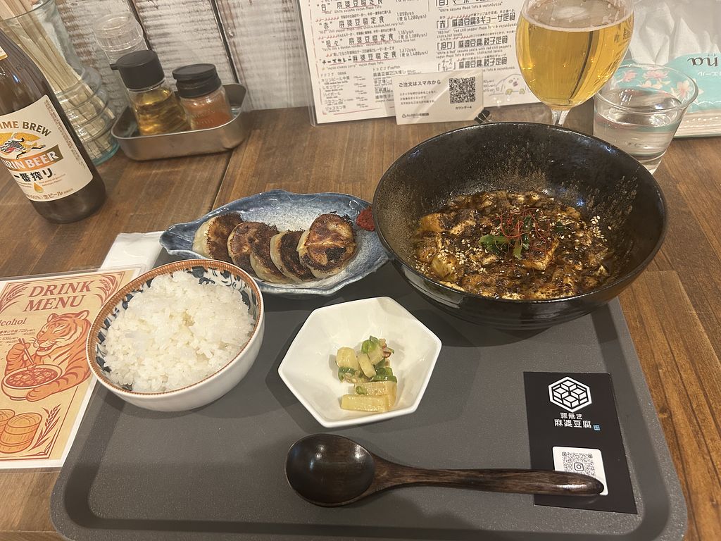 We each ordered the deluxe Mapo Tofu set to try the different types of mapo tofu, as we couldn't decide on just one. The gyoza were delicious. The portion was generous, a bit too much for us. I highly recommend it. I'll definitely be back next time. A cozy little shop with good food.