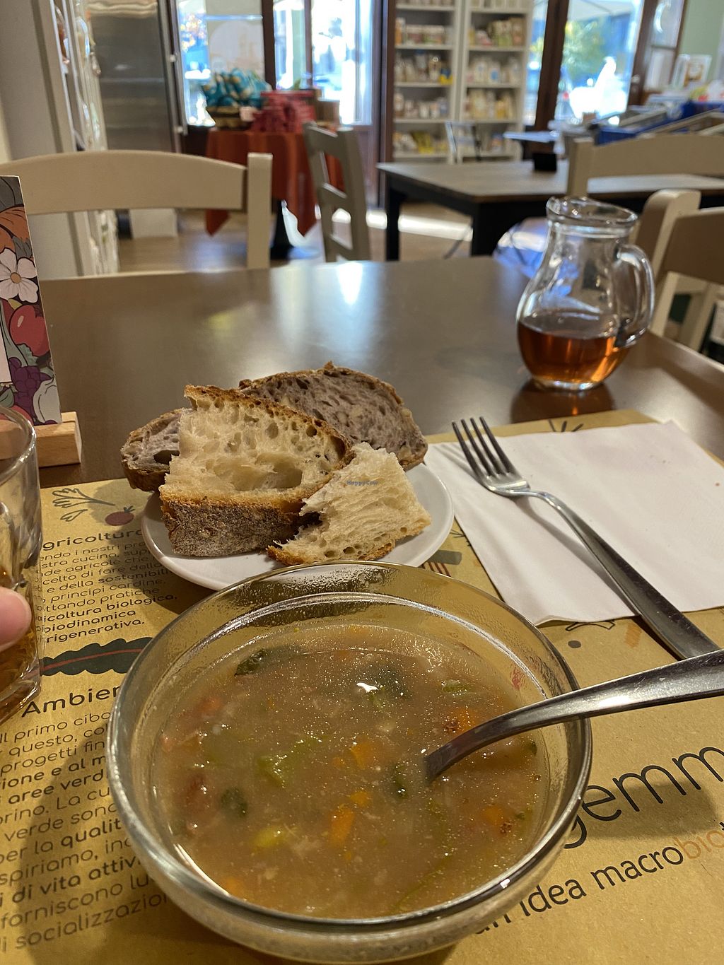 Macrobiotic restaurant offering a few vegan items such as salads, focaccia, desserts and more. Reported fully vegan March 2025. Open Tue-Wed 08:30-19:30, Thu-Sun 08:30-22:00.