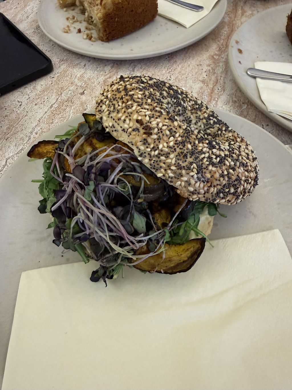 Coffee shop offering vegan options such as clearly marked bagels, cakes, and milk alternatives. officially opening on 7:10. More