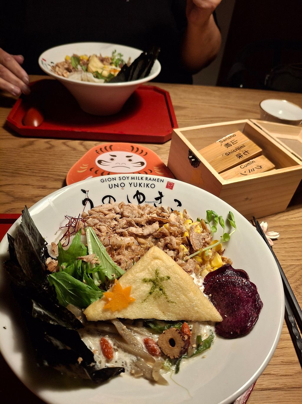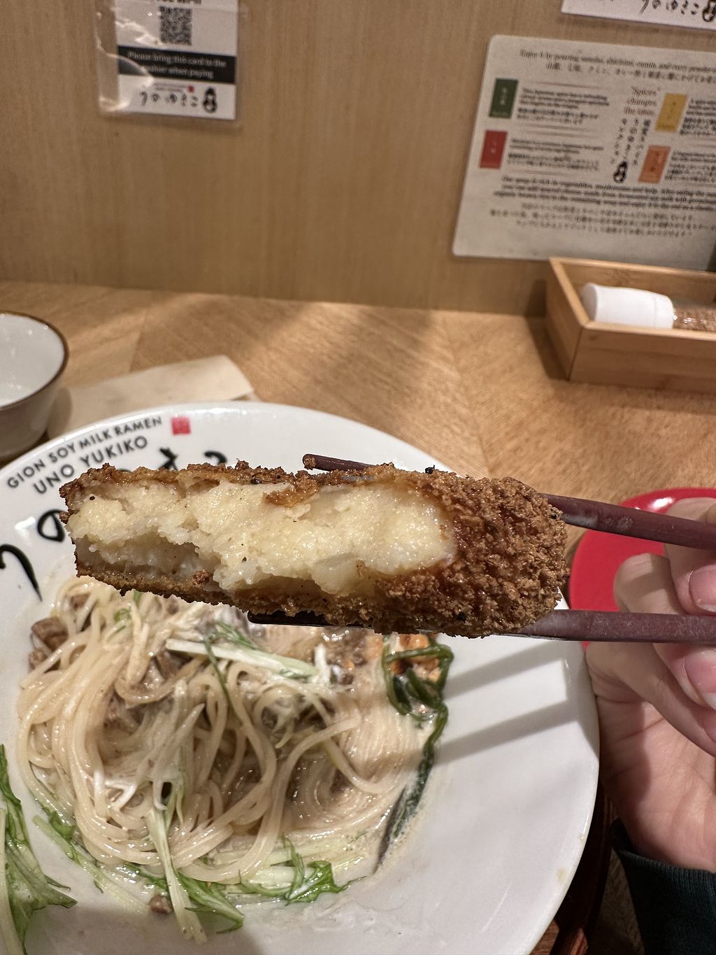 Warm and inviting classically styled Japanese interior complete with shoes off. Served an exquisite gourmet vegan soy milk based ramen that was memorable to the last spoonful. Lovely staff rounded out the life changing ramen.
