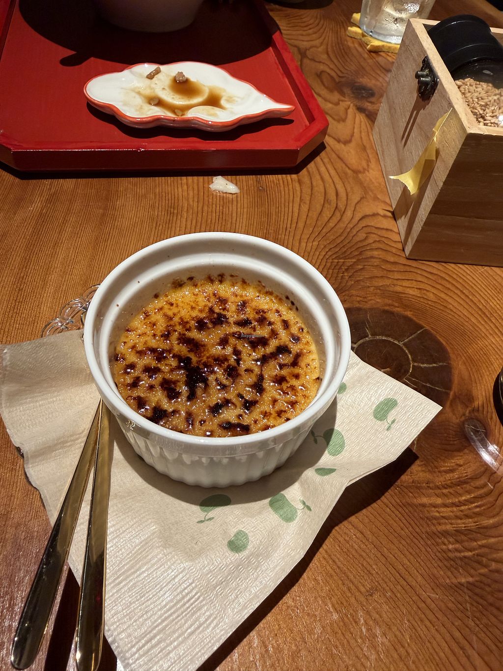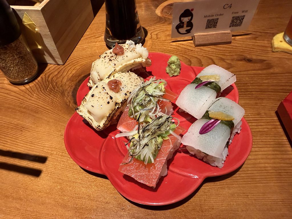 This is the first place in Japan where I could actually try vegan nigiris. Ramen is delicious as well. Make sure to leave room for dessert, creme brulee is a must try.