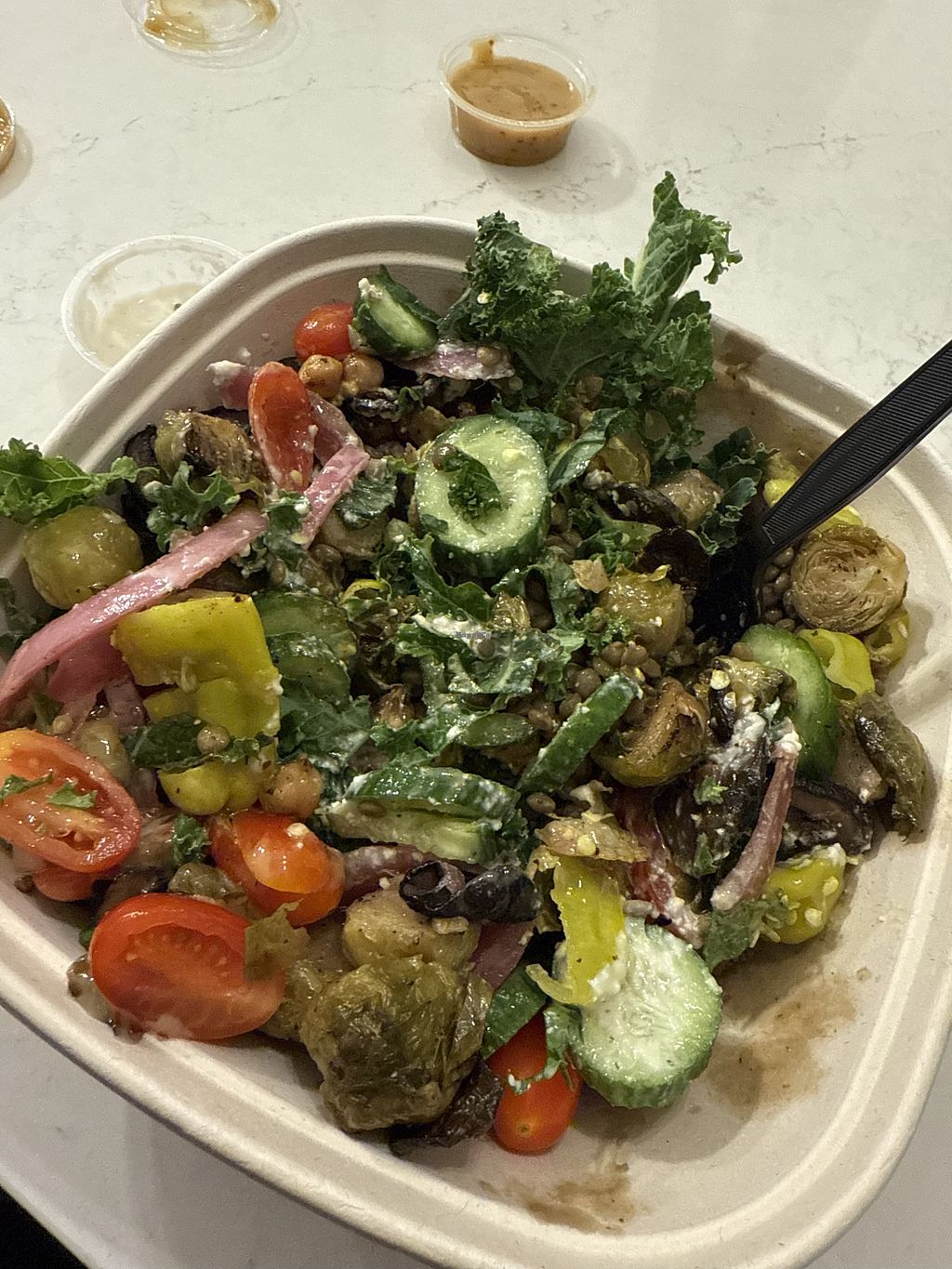 Read moreI had a bowl with rice, spinach, cukes, tomatoes, three grain tempeh, sweet potatoes, onions, scallions, sunflower seeds, and cashew lime dressing. It was incredible!