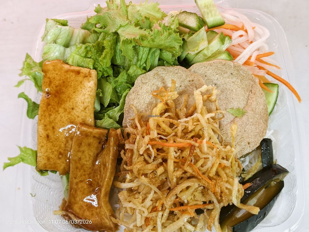 Vegan food cart selling house-made Vietnamese food, coffee and tea. Menu shows photos of each dish such as stir fries and sandwiches with tofu and mock meats. Mayonnaise is vegan as of June 2025. Relocated from 8648 SE Foster Rd. Open Tue-Sat 11:00am-8:00pm, Sun 11:00am-4:00pm. Closed Mon.