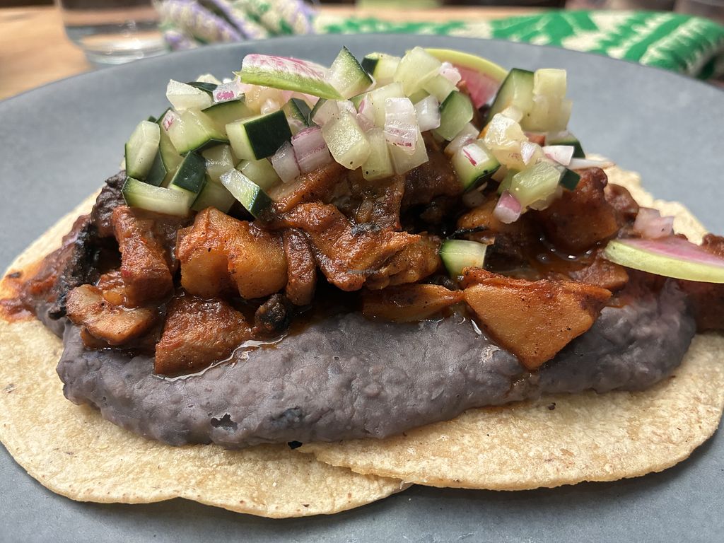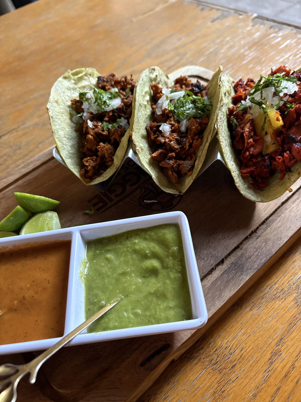 Trilogía: Tacos fungi based, en tortilla de maíz orgánico, de nopal. …