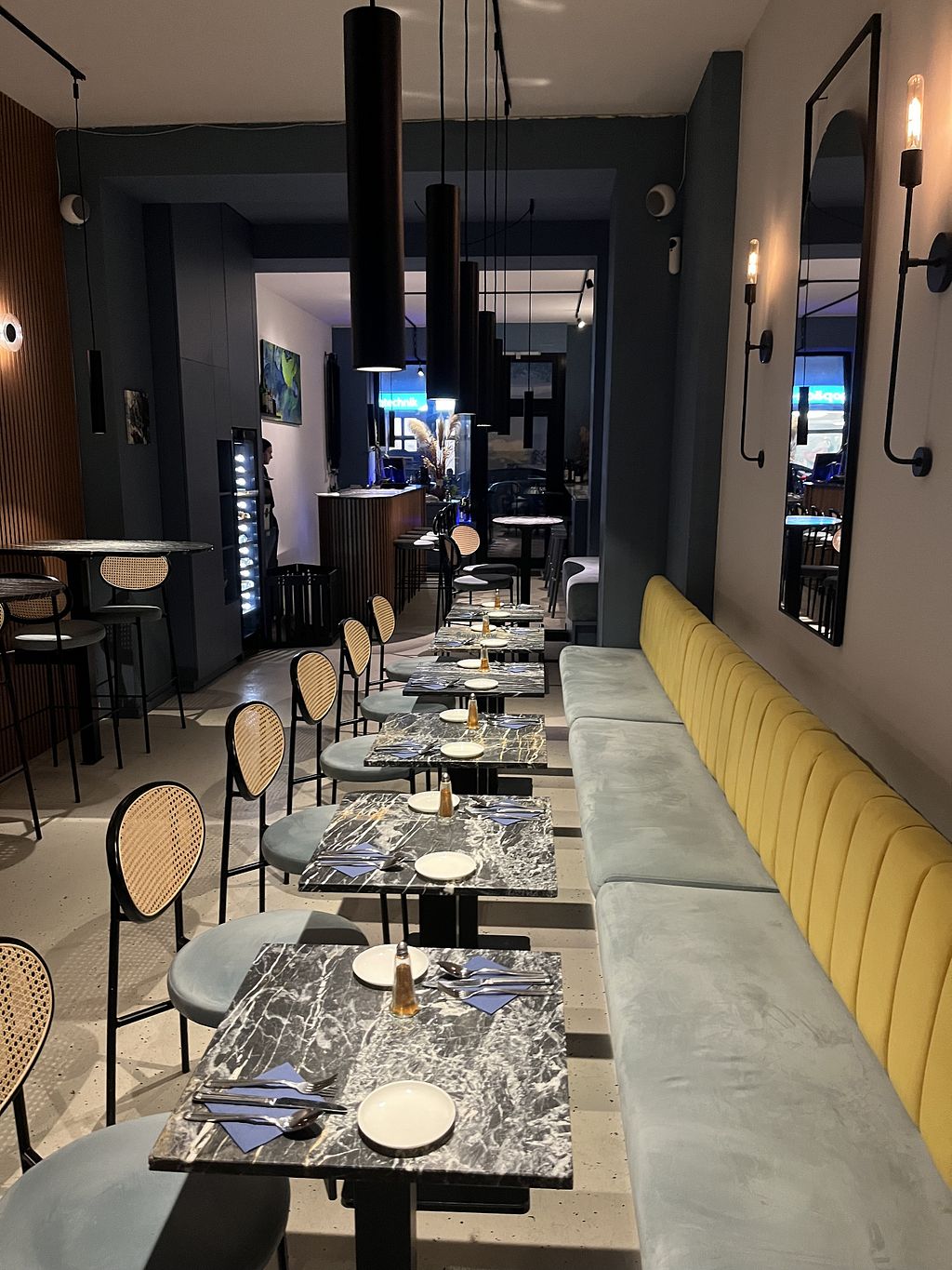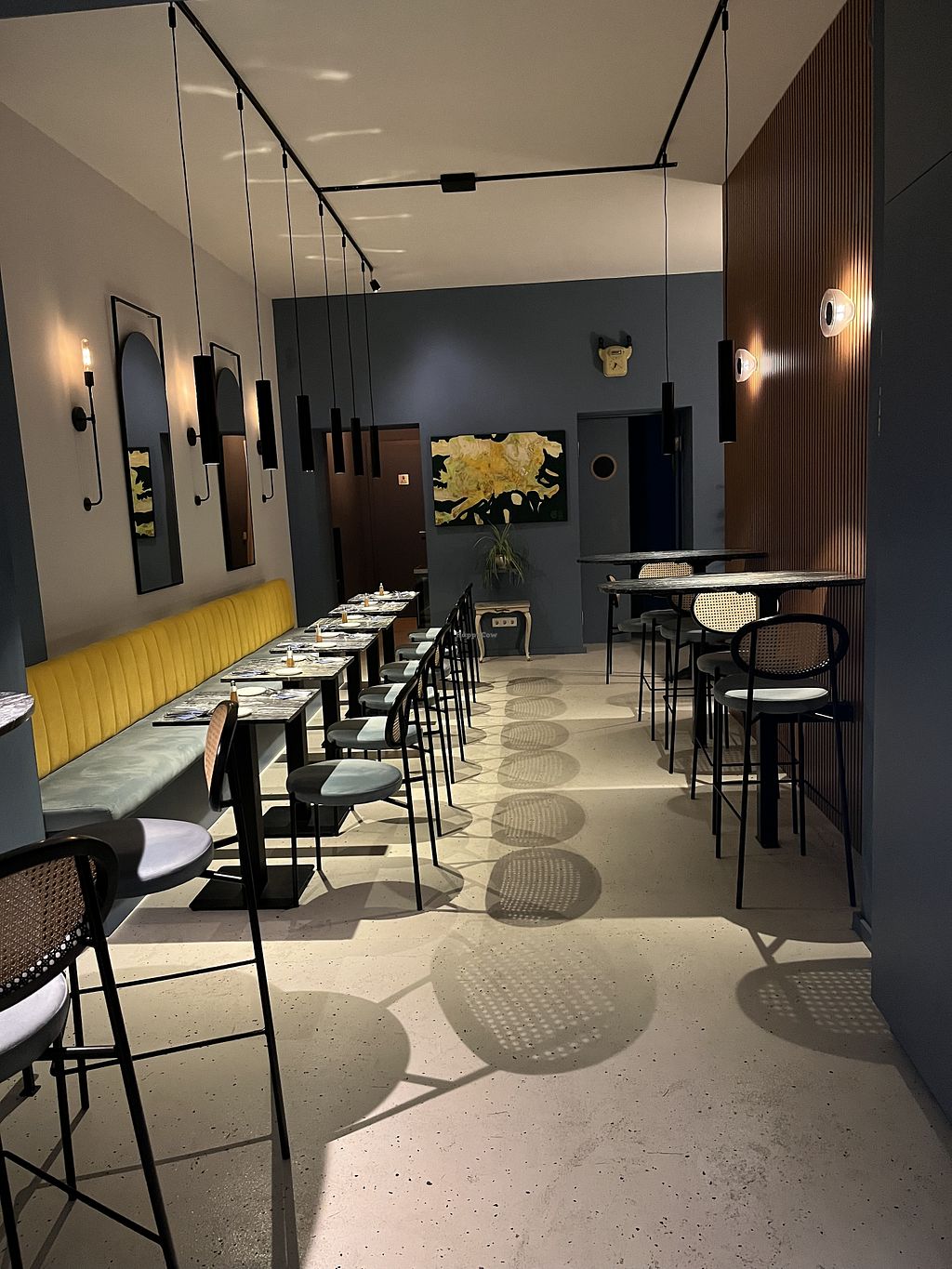 Das Ambiente ist modern, stilvoll und trotzdem gemütlich. Das reduzierte Design mit klaren Linien, warmem Licht und eleganten Farbtönen schafft eine ruhige Atmosphäre, die perfekt zu diesem kulinarischen Erlebnis passt.