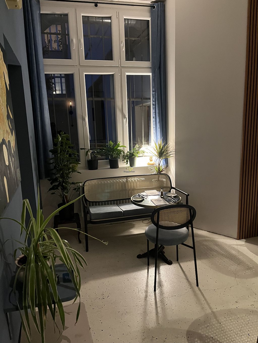 Fully vegan restaurant with bar. Has a changing 3-5 course menu, plus snacks, alcoholic and non-alcoholic drinks, cocktails and more. Open Wed-Sun 18:30-22:30. Closed Mon. & Tue.