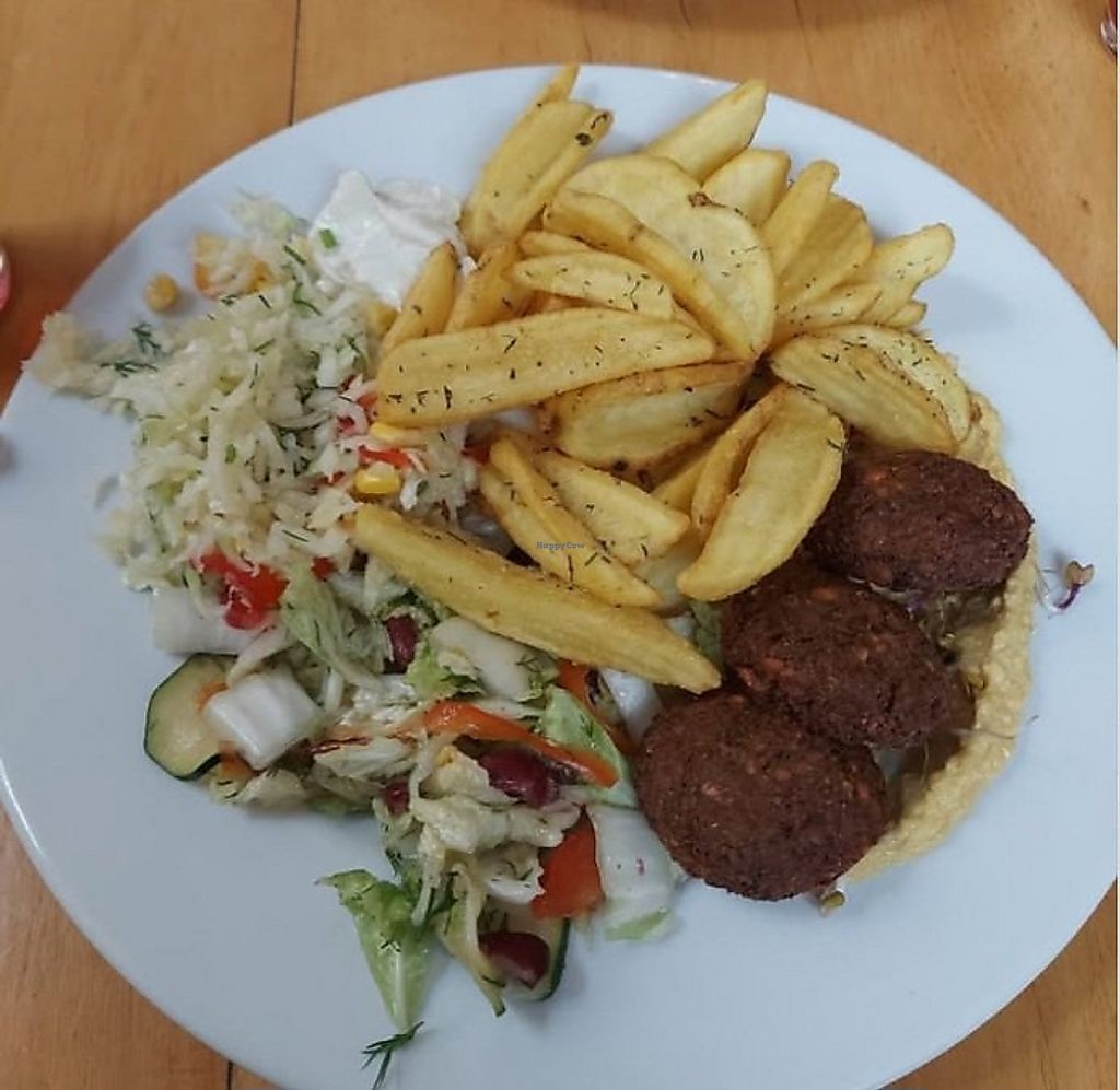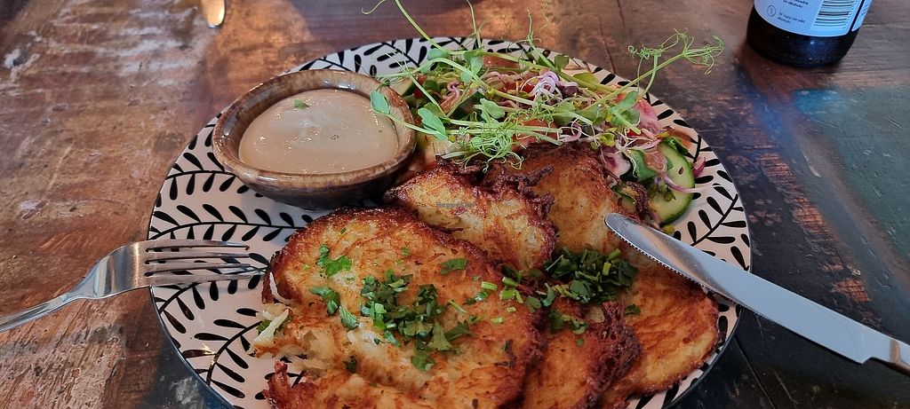 Read moreRestaurant upstairs 08/2025: The vegan potato pancake with the sauce and salad was delicious! Very filling.