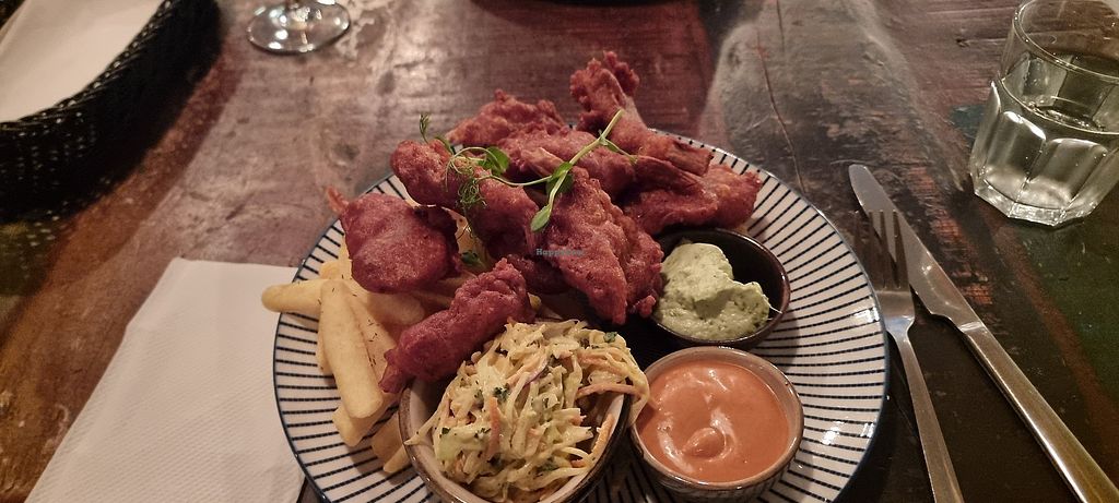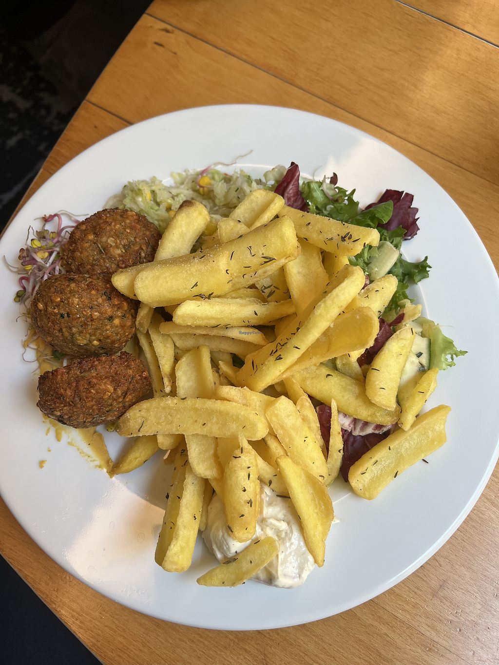 Bar downstairs 08/2024: Didn't really like what I ordered, the fake fish tasted like dry falafel, the salad was pretty bland, the fries were alright. The dip was the best part. Big portions so that's a plus if you're really hungry.