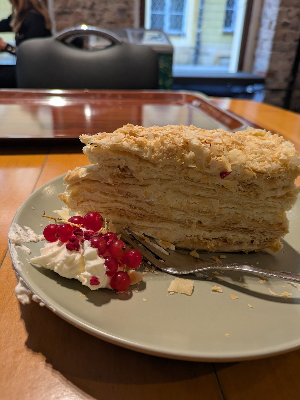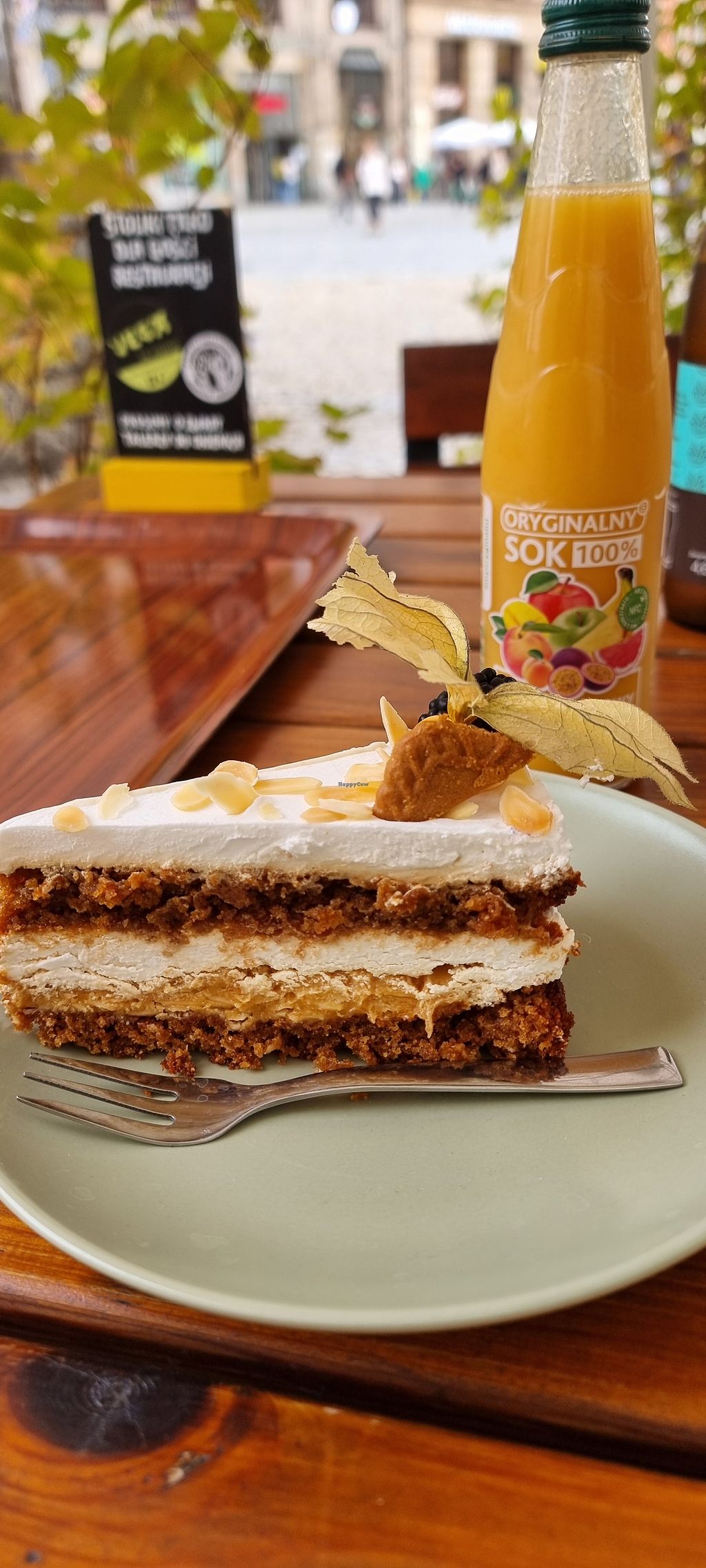 Na pewno bardziej polecam dolną restaurację niż górną, chociaż ciasta na piętrze wyborne! Świetna opcja na lunch, polecam zraz i naleśniki. Dobre śniadania, da się najeść i nie wydać fortuny.