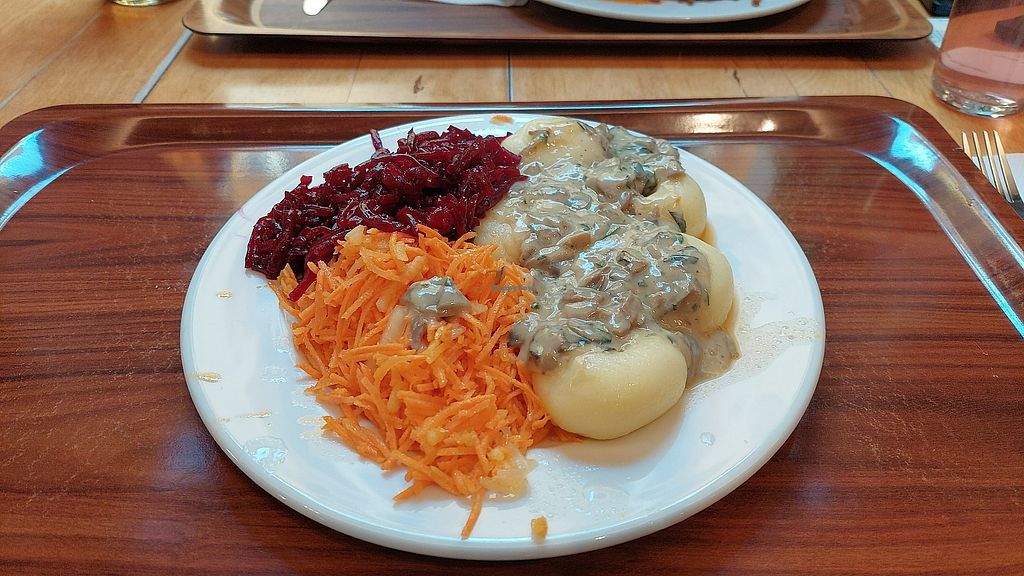 I loved to regain the tastes of my childhood at this place. There are several traditional and not so traditional dishes to choose from. I opted for buckwheat (Kasza) with stroganoff gulasch and two types of typical polish salad (Surówka) and of course a Kompot to drink ;)