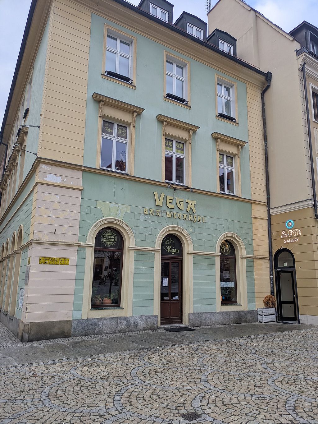 The oldest vegetarian restaurant in Poland, established 1987 and became fully vegan in 2013. On 2 floors and renovated in 2014. The ground floor features a buffet spread of veganized Polish dishes, soups, falafels, and burgers. On the first floor is a world cuisine menu. Open Mon-Thu 09:00-20:00, Fri-Sat 09:00-21:00, Sun 09:00-20:00.