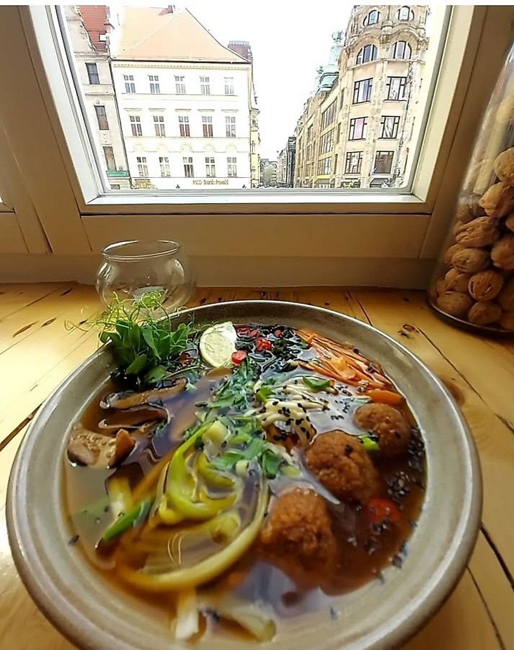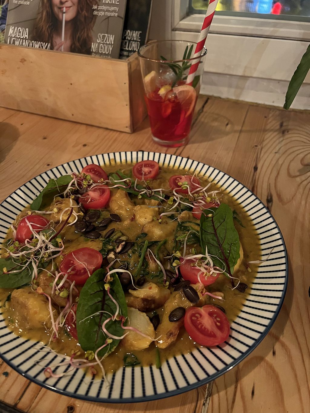 Alle Jahre wieder ist das obere Restaurant ein Muss bei unseren Wroclaw-Besuchen! Wir sind auch so langweilig und bestellen jedes Mal das gleiche - Bibimbap und sehr gute glutenfreie Pizza mit Birne, Walnüssen und veganem Feta. Dazu noch das mega gemütliche Ambiente... Es ist ein bisschen schade, dass man den oberen Teil des Restaurants so leicht übersieht.