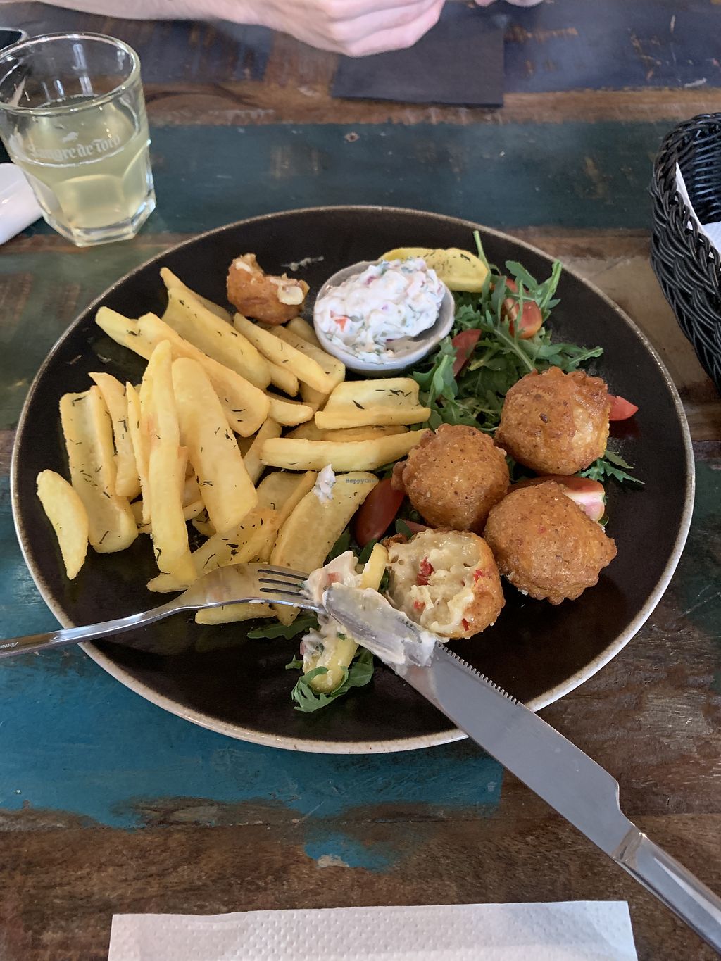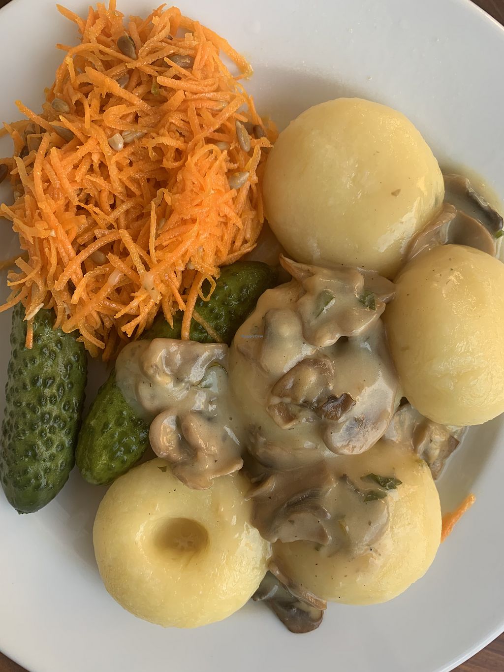 Zraz z kaszy, z ziemniakami i surówkami + kompot.