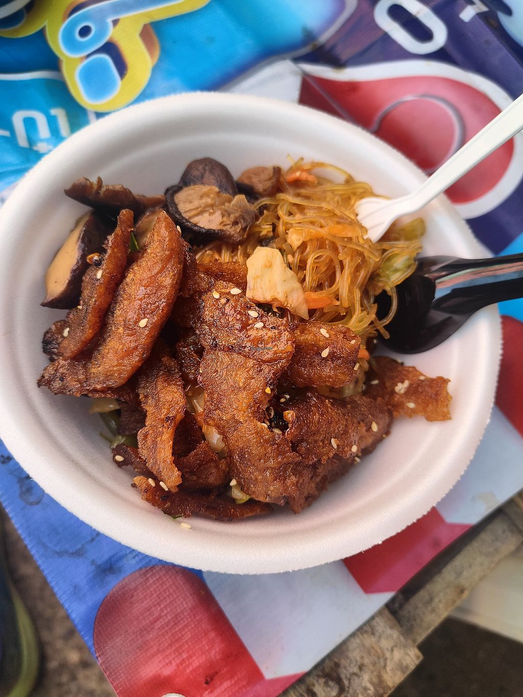 Tom yum soup.Thick white noodles . Flavour texture and spice. What more could you ask. All prepared fresh in front of you! #Veganuary back 3 times in total