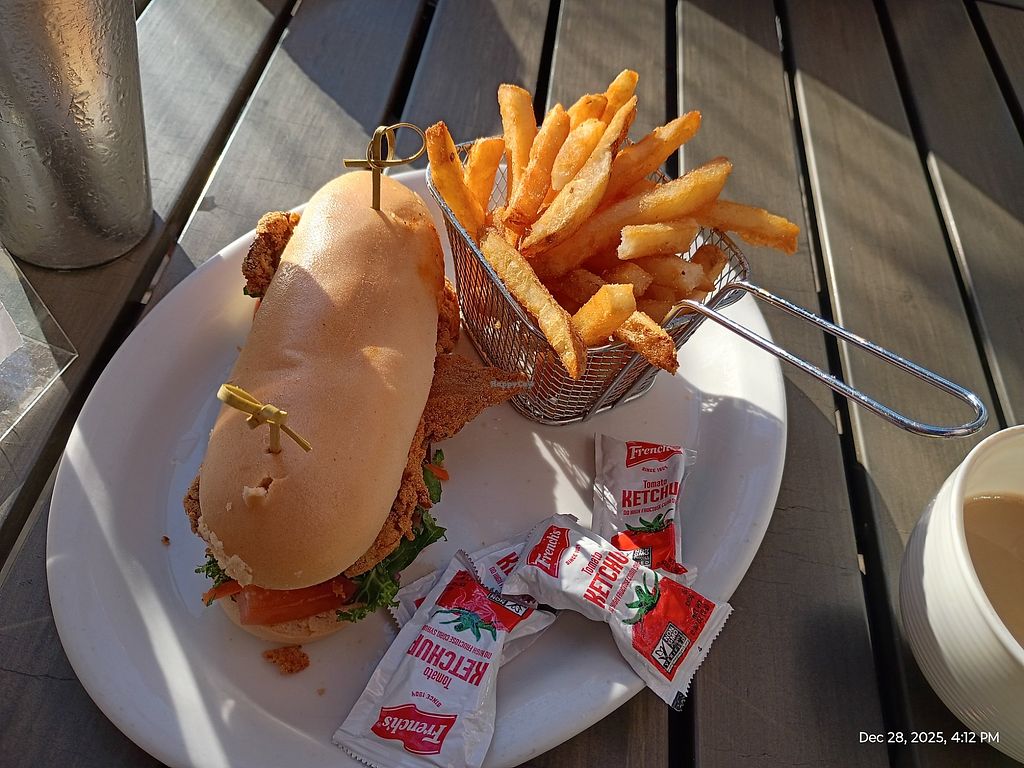 Delicious Buffalo chick’n sandwich and even better fries. Hit the spot!