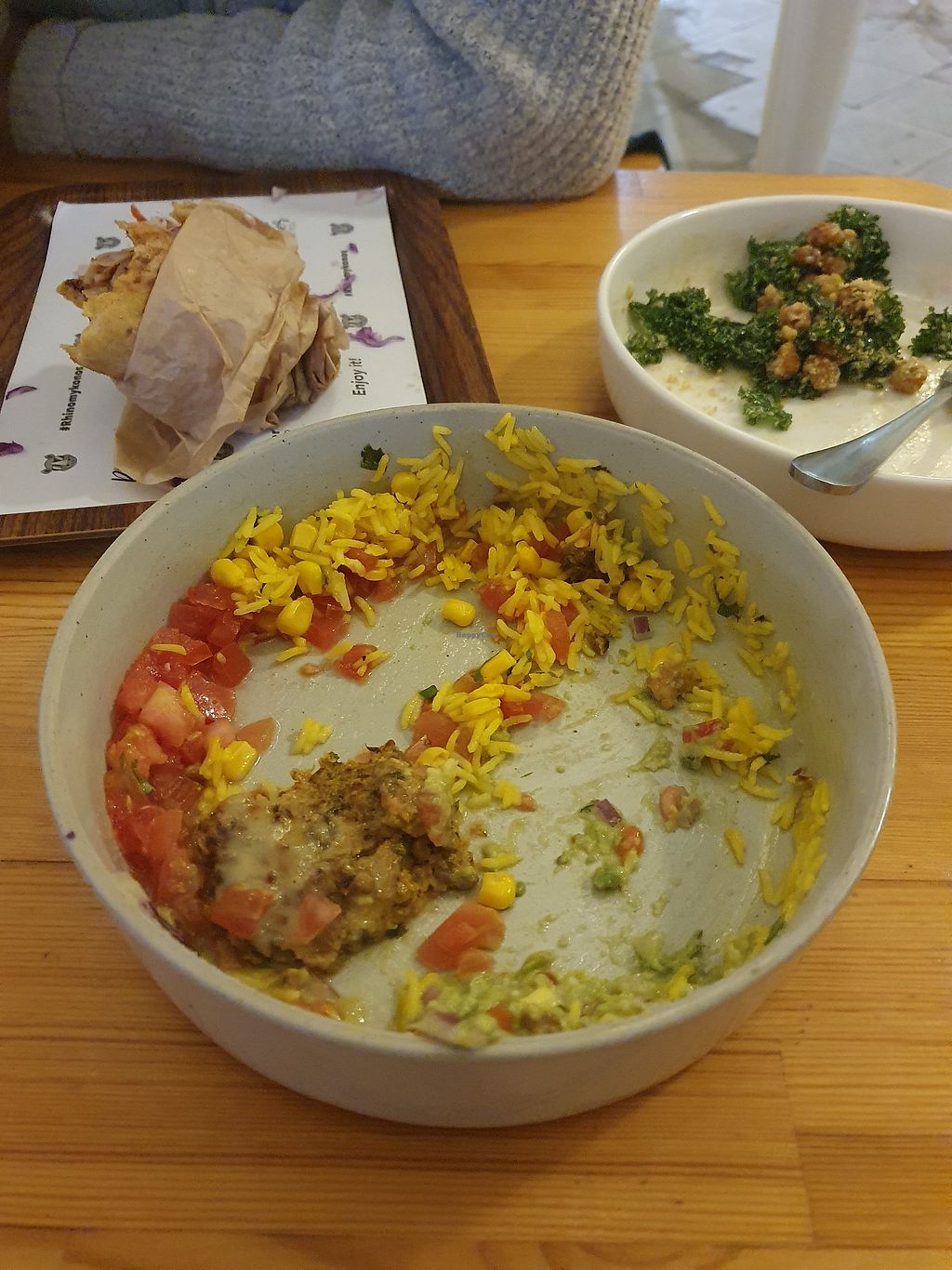 Fantastic flavours and friendly service, over ordered (eyes bigger than belly). Had the kale and chick pea salad (Rhino) and the smash salad with lentil patties, rice, guacamole and salsa plus a mushroom gyro between two 😋 great service, really friendly.