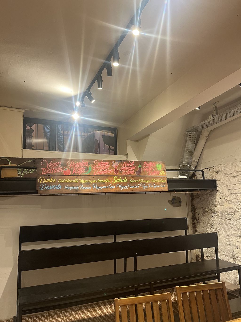 Fuimos básicamente animados por las reseñas, y después de haber estado en otros veganos en Estambul, puedo decir que este es el que menos nos ha gustado, el local no tiene ningún atractivo, los asientos un poco incómodos, es en un sótano, sin terraza, y en el que más hemos pagado, 60€ tres personas, un solo plato y una sola bebida para cada uno, y sin postre. Se anuncia como que cuidan gatitos pero no había rastro de ellos.