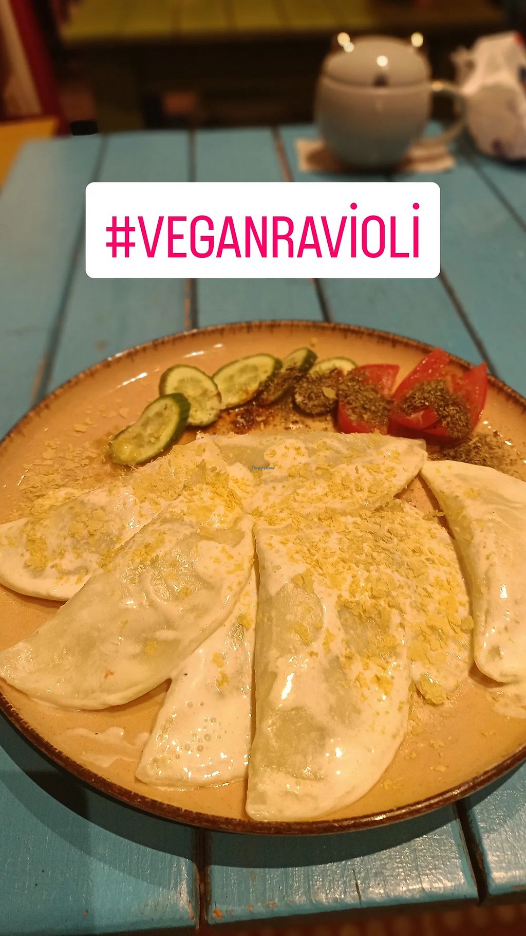 Spoken aubergine and tofu cheese RAVİOLİ with pea cream sauce