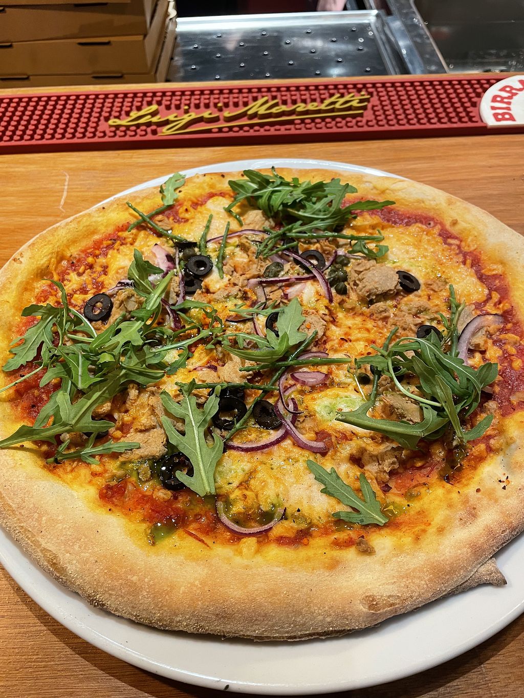 It’s more 4.5 than 5 but for benign things. Food is good, although there’s no hiding that vegan pizza at Satriale’s (not a vegan place) is a different league. This one is solid though. The staff seem very keen and enthusiastic but not well coordinated among themselves. When we came, first nobody came to our table for like 15 minutes, a bit later we had each member of the staff independently ask us if everything was ok, which amounted to being asked five times in a row. I had PizzaGPT, which actually wasn’t too bad, except that the BBQ sauce didn’t fit at all and it would have been better without. Fungky pizza was good tho. The beers they have are good but I wish there was a slightly wider choice. The location is a big plus.