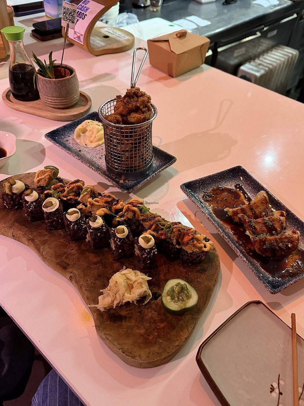 Honestly a perfect dining experience for me! Menu was well laid out and had plenty of incredible options to choose from without it being overwhelming with choice. You can order via a QR code which is a massive bonus for me. Really well decorated, clean restaurant and the staff were pleasant. I ordered the California roll, teriyaki no chicken roll, katsu bao bun, crunchy wings and topped everything off with the matcha tiramisu. Everything was so fresh and unbelievably tasty!!!! I left feeling pleasantly full and so happy I chose to come here. Can’t wait to come back 10/10!!!
