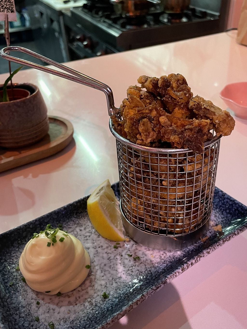 We ordered the shrimpless rolls, seaweed salad, fried 'chicken' bao and 'fried chicken pieces'. Highly recommend the 'fried chicken' (oyster mushrooms)- very delicate batter, great texture and flavour. Seaweed salad portion was generous and rolls were great!