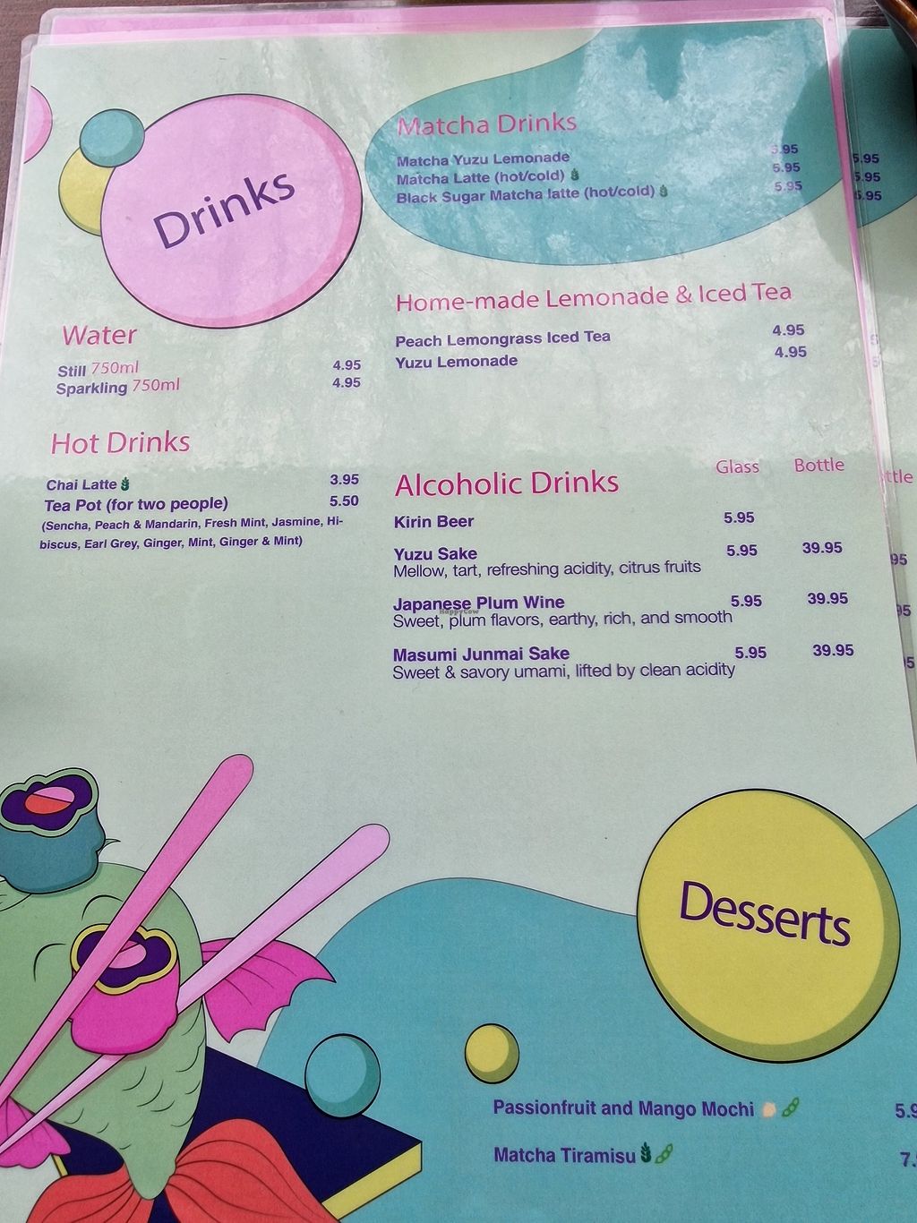 We really enjoyed the sushi, gyozas and matcha tiramisu. They had a lovely meal deal including a side, a roll of sushi and dessert.