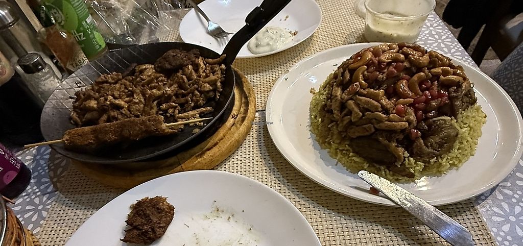 The restaurant is small and the looking unfortunately somewhat disorganized and untidy. The host was very friendly and hospitable. The dishes ordered were really tasty, but some ingredients did not look fresh (e.g., cross-sections of fresh vegetables, pomgrenade seeds), it was really fatty and heavy(!), and there was a long hair in one dish. Bread was served in plastic bags. Given the extensive menu and what appears to be a one-man show, this is hardly surprising. Therefore, unluckily I was not able to completely enjoy the dishes. We got a dessert for free and they also offered as some coffee, which was quiet nice.