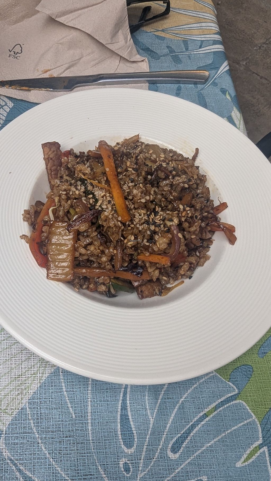 Delicious curry with tofu and pad Thai with Tempeh. Pad Thai could have been less oily though, but taste was very nice anyway. Crema de Catalana wasn't really our dessert style but others might like it.