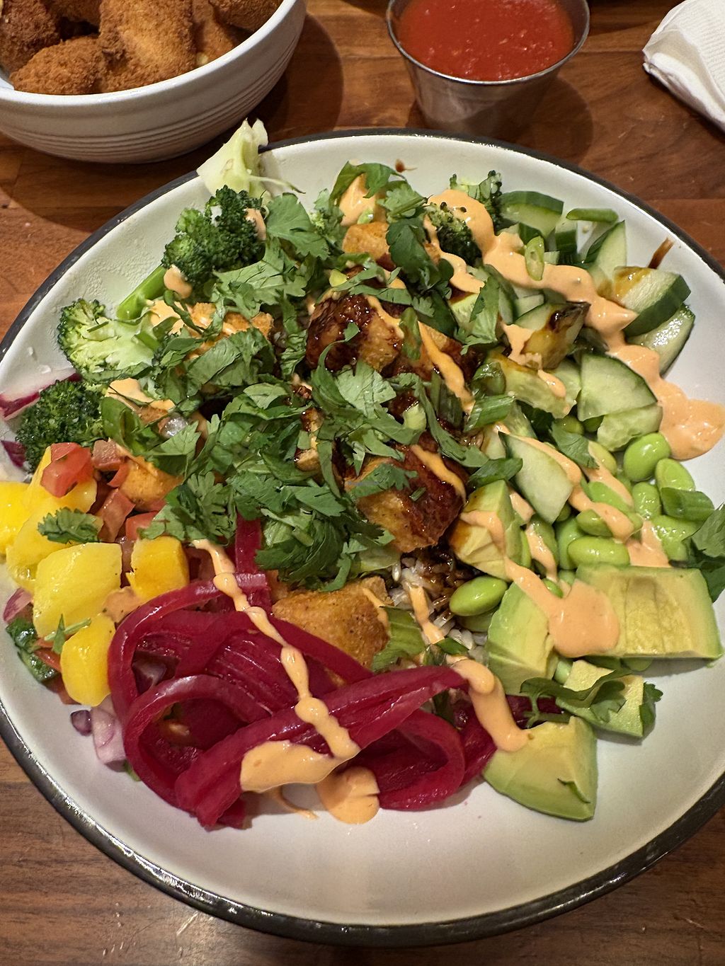 I’ve liked most of the items I’ve had at Veggie Grill. The Ranchero Bean Fiesta bowl is great.