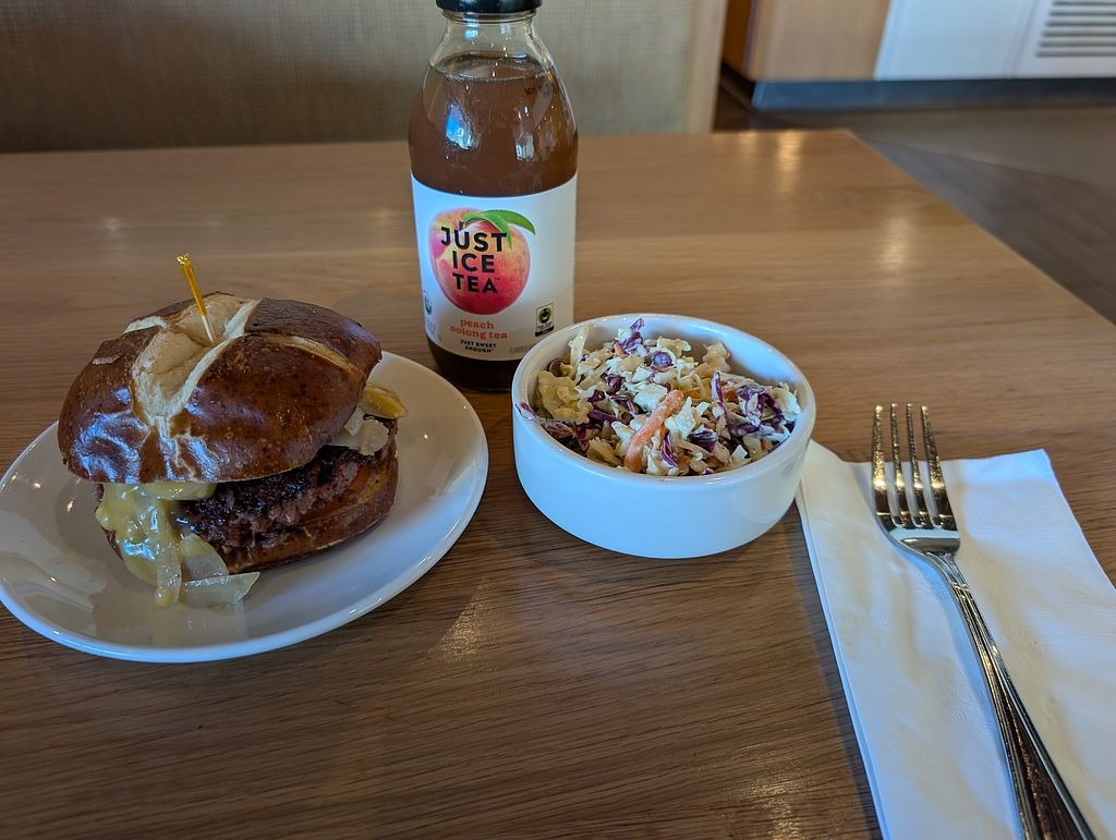 I had the Pub burger with jalapeno coleslaw. It was a good burger on a nice pretzel bun. The coleslaw had some heat to it, but not too much. I'm looking forward to trying other items.