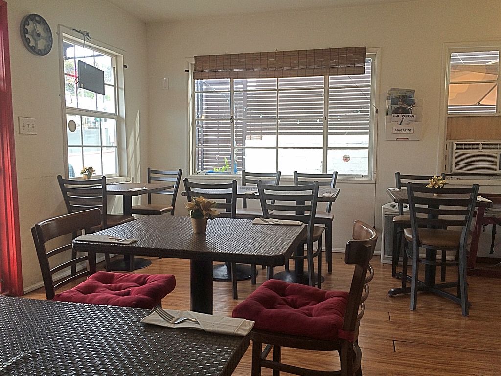 Vegan cafe located just off the 101 Fwy and south of Universal City Walk. Offers an extensive menu of Thai food dishes along with several kinds of vegan-veggie burgers and salads, cakes and drinks. Example of choices include mock duck curry, pad thai, tom yum and tom kah soups, soy chicken larb, fresh rolls, vegan burger with fries. For dessert try a cake slices, the mango stick rice, or thai pancake with ice cream. Est. since 2013. Reported closed October 2025.