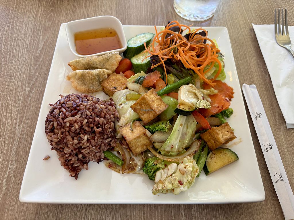 Read moreI got the weekday lunch combo, Spicy Basil with my choice of plant protein, tofu. It was delicious!Perfectly portioned with salad, two fried vegetable dumplings, and choice of white or brown rice.