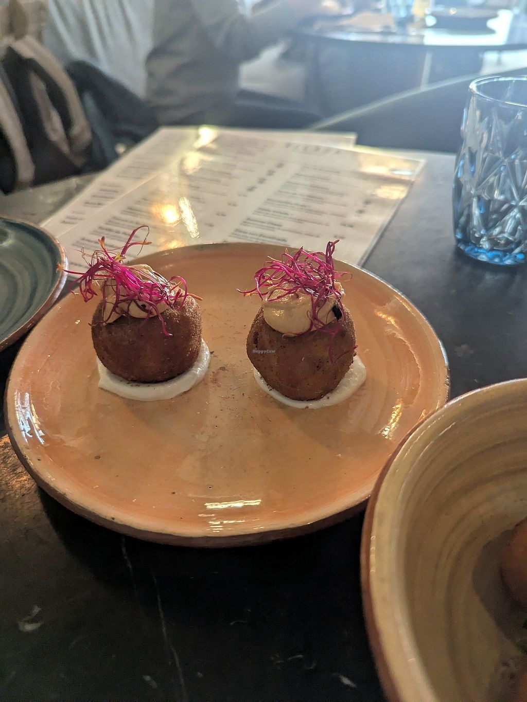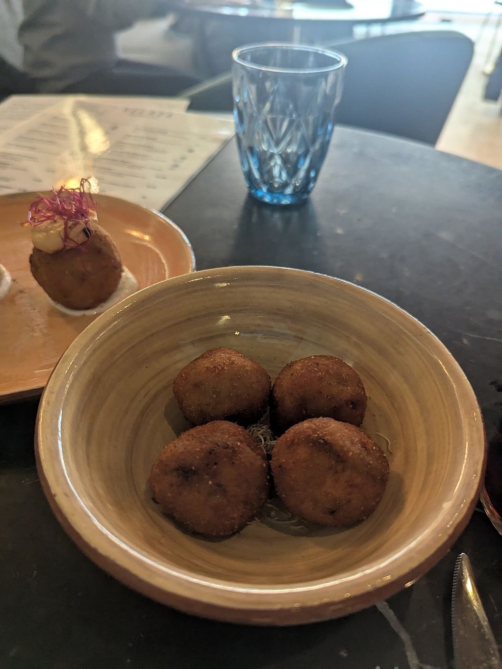 Some of the dishes (candied figs & ice cream, meatball burger) were very good and felt almost worth the price point. However, I was super disappointed by the teriyaki skewers- 7€ for about 100g of heura chicken which had seen the inside of a frying pan for all of about 4 seconds. Not marinated as promised; could have made it myself at home for about 1€/portion.