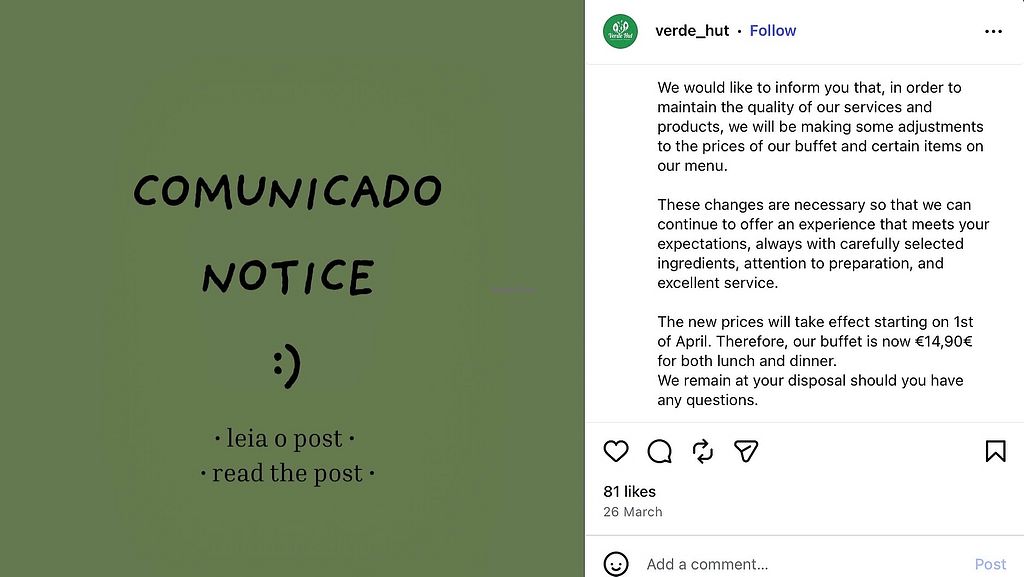 NOTICE: Buffet price now € 14,90