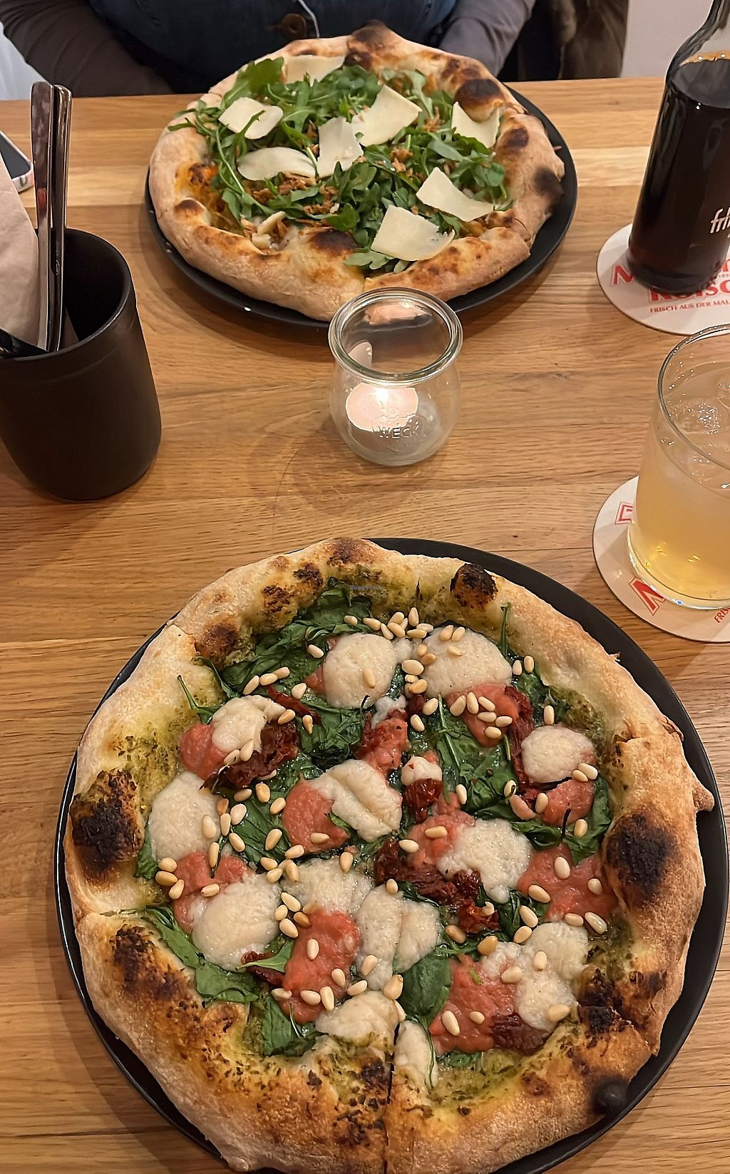 Wir hatten beide eine Pizza und waren auch beide sehr begeistert. Der Teig war richtig fluffig und auch der vegane Käse war sehr authentisch.