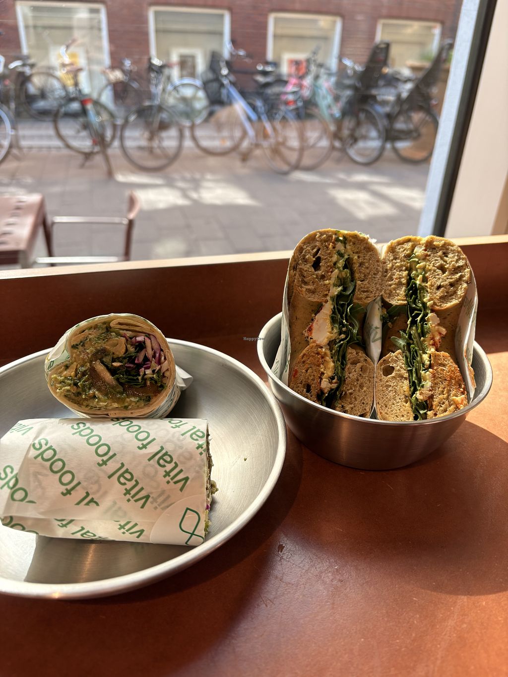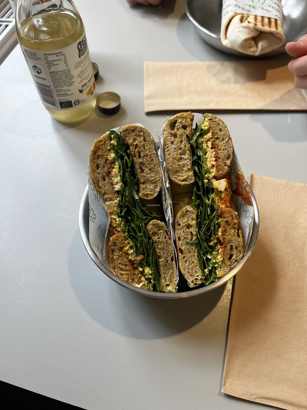 So convenient to have a quick healthy sandwich spot that’s fully vegan. My partner loved the chickpea pesto wrap. I had the eggy tofu bagel - really good but wished there was more filling and less sriracha as it was slightly spicy for me!