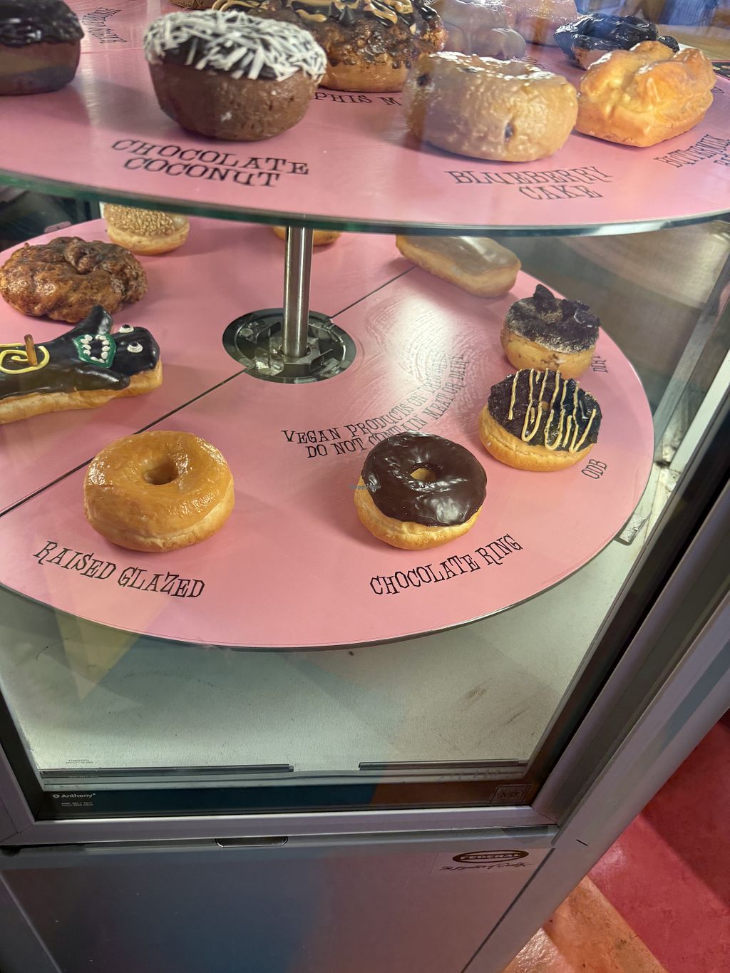 Voodoo has a robust selection of vegan donuts daily. And they are so good! I'm not sure how anyone can tell the difference. Try their signature Voodoo doll donut! You will not be disappointed!