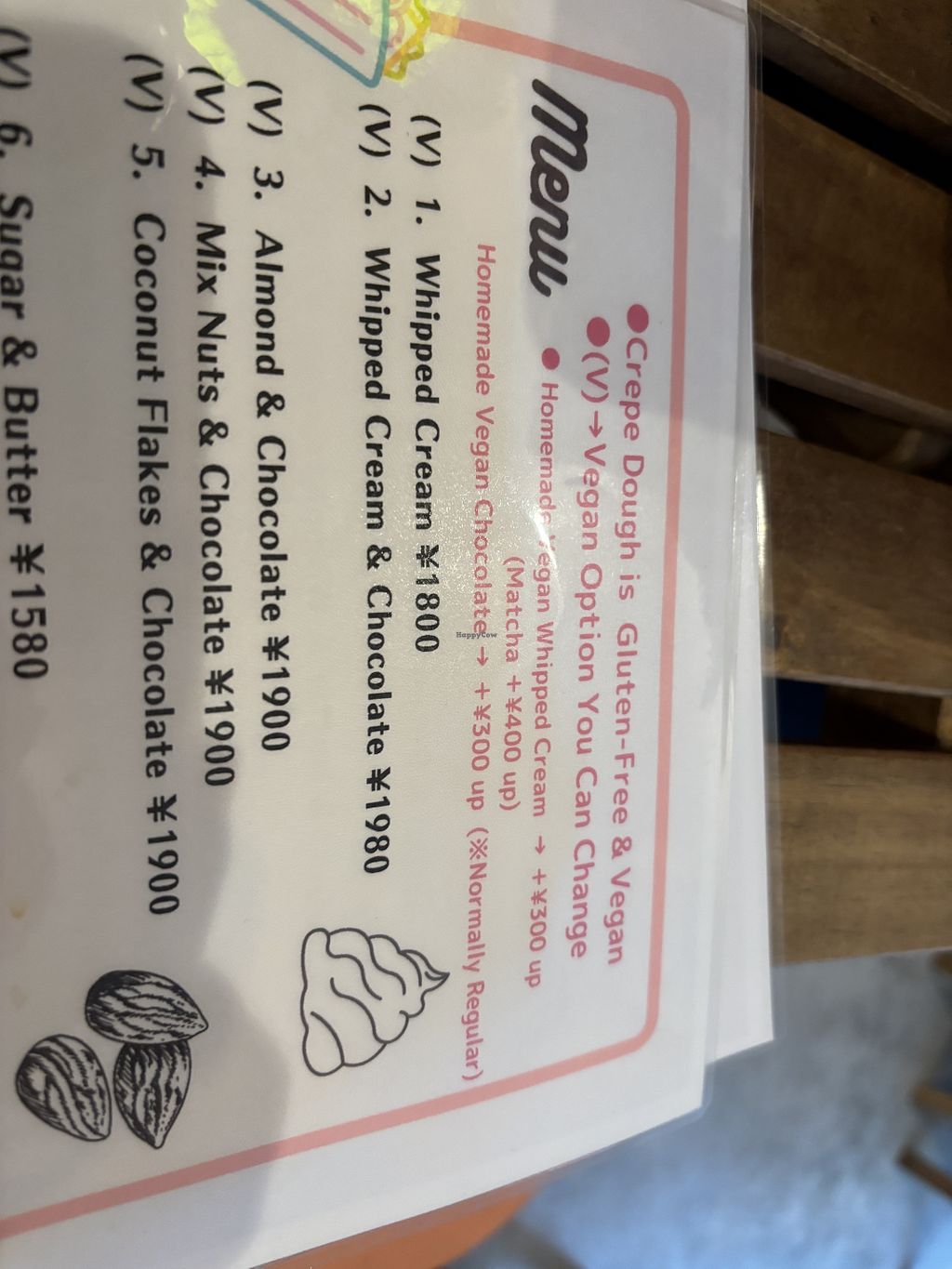 like why is a crepe 1900 yen 😭 i did not love the cream either 🤧 i will say the crepe itself is incredibly good. I've had a few vegan crepes in the states and they're ass lmao. owners are so friendly and sweet