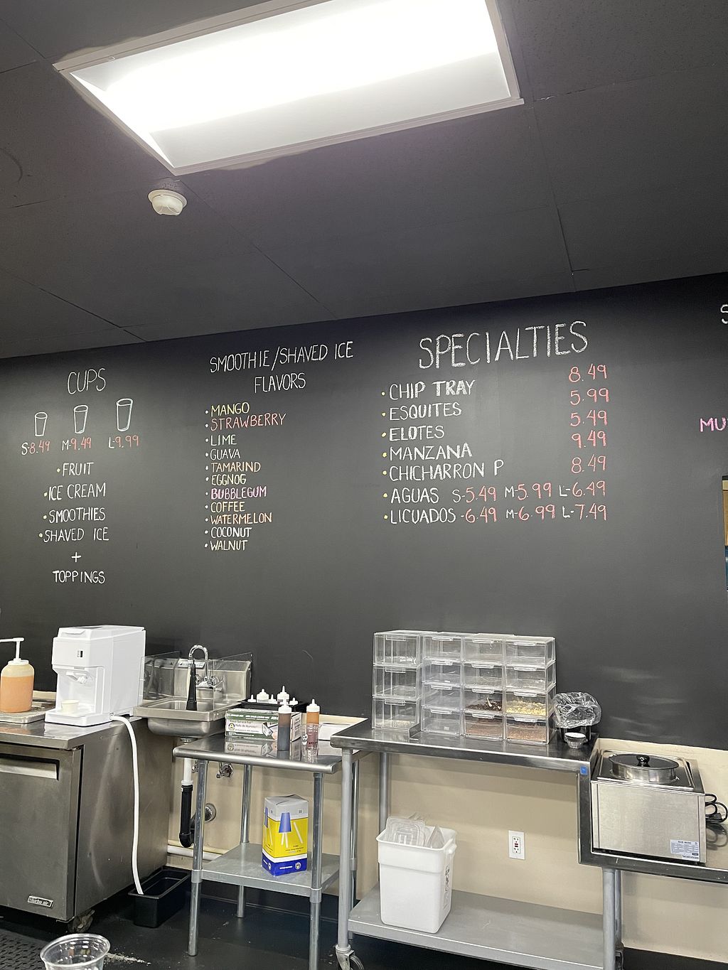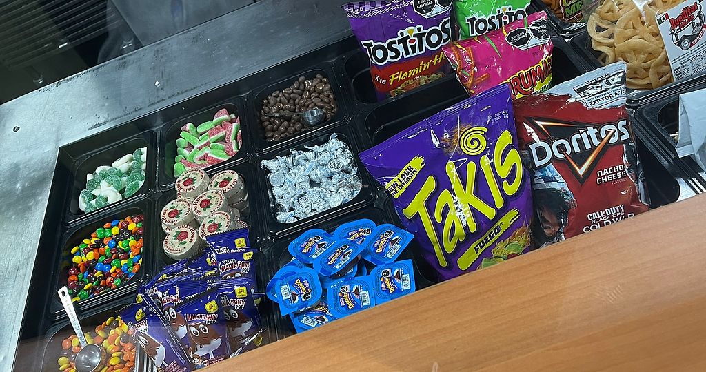 Mexican style snack bar. Offers three smoothies, fruit cups, agua freseca, and chip plates. Vegans can choose between multiple toppings including chamoy, tajín, valentina (Mexican hot sauce), candy and fruit. Open Mon-Sun 11:00am-10:00pm.