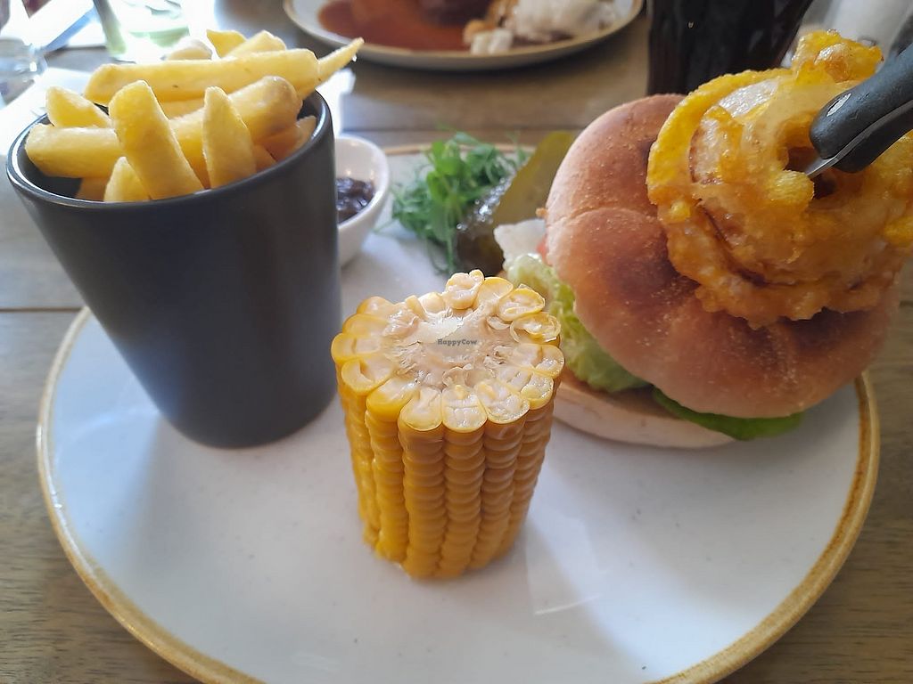 Our booking at a different restaurant was cancelled last minute so we just turned up here with no notice on a bank holiday weekend evening and they were very accommodating. The restaurant is very large so it is a nice relaxed setting which is just what we needed. The staff were welcoming and friendly, the vegan options were clearly labelled on a separate section of the menu - I think there was one starter option and about 5 different main courses for us to choose from. We had the sweet chilli 'no chick' and the vegan sausage, potatoes and red onion gravy and a side of onion rings - all delicious! Their wine list also labels which are vegan which is great. We had such a wonderful experience here that we cancelled our dinner plans for the next night and came back again! The vegan cheezeburger was also very tasty. Couldn't recommend more 😊