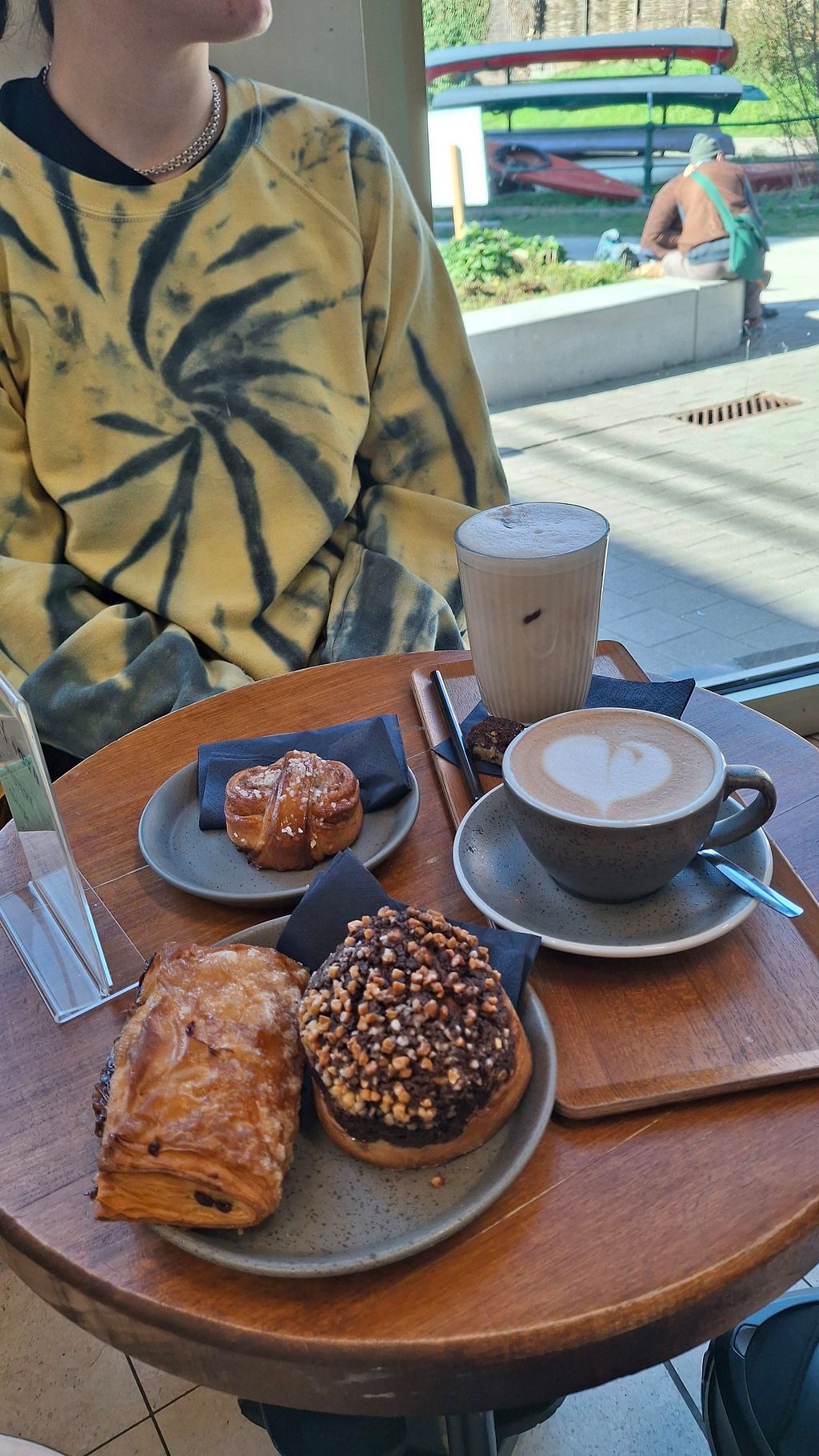 A cozy place with good coffee and indulgent pastries. We got a cappucino and a cinnamon pastry.