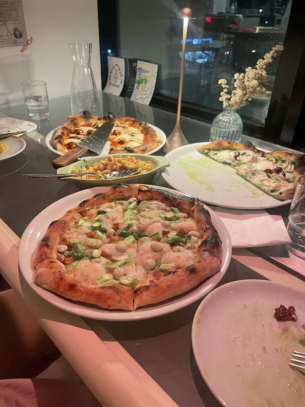 Read morepizza was really great, all the different ones we tried were flavorful and all the components went together well. my favorite was the pesto pizza with the lotus on top. the mac and cheese and eggplant dish were good too, and i would definitely try the roasted cabbage or other pizza next time i go. each pizza has 6 slices and its perfect to share with a group.