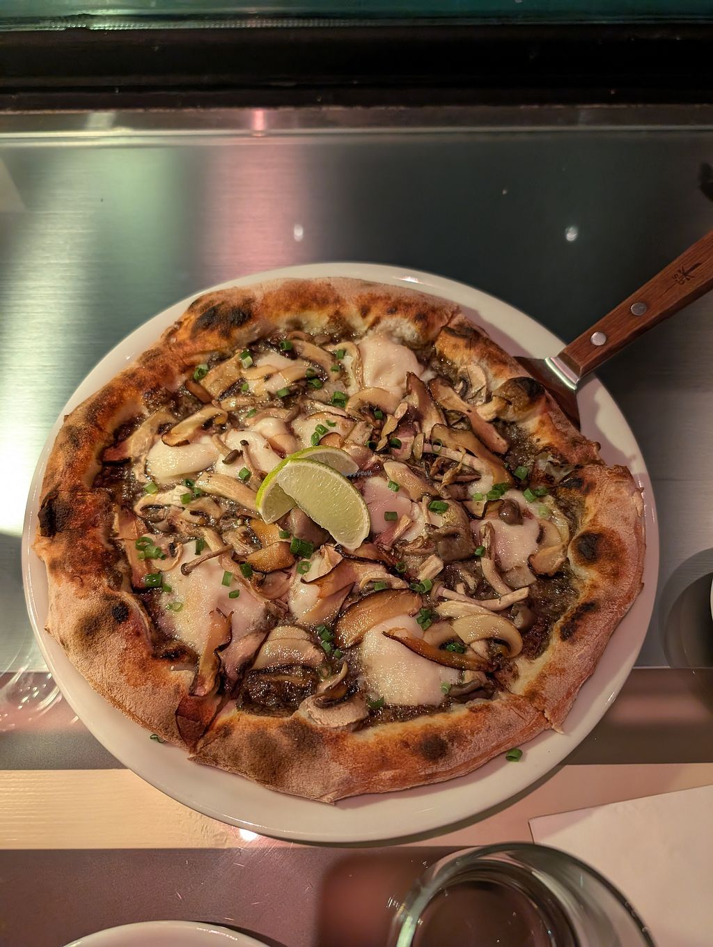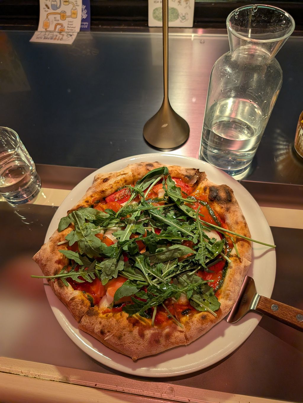 I had the sausage pizza and a kombucha. Both were extremely tasty. European prices, though. Most mains are ~25k.