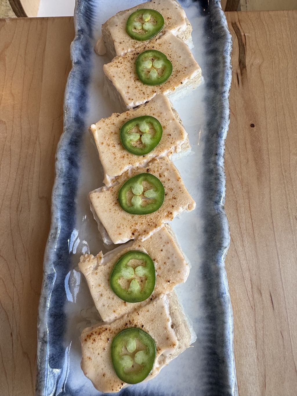 On our first visit we tried the smoky sake roll, mantaiko truffle onigiri, and Ohnagi oshi. We loved it! The Smoky sake roll was smoky and almost reminded me of bacon. We also really enjoyed the Oshi. It reminded us a little of the “torched and pressed” at PLANTA. My partner didn’t like the onigiri as much. He thought it was too meaty. I thought it was pretty good, but it was not shaped like any onigiri I’ve had. It reminded me of Spam Musabi. We liked it so much we came back the next day and tried the Hot Flamingo and Ohnagi rolls—both good, but the Hot Flamingo and Smoky Sake were overall probably our favorites. Can’t wait to try more.